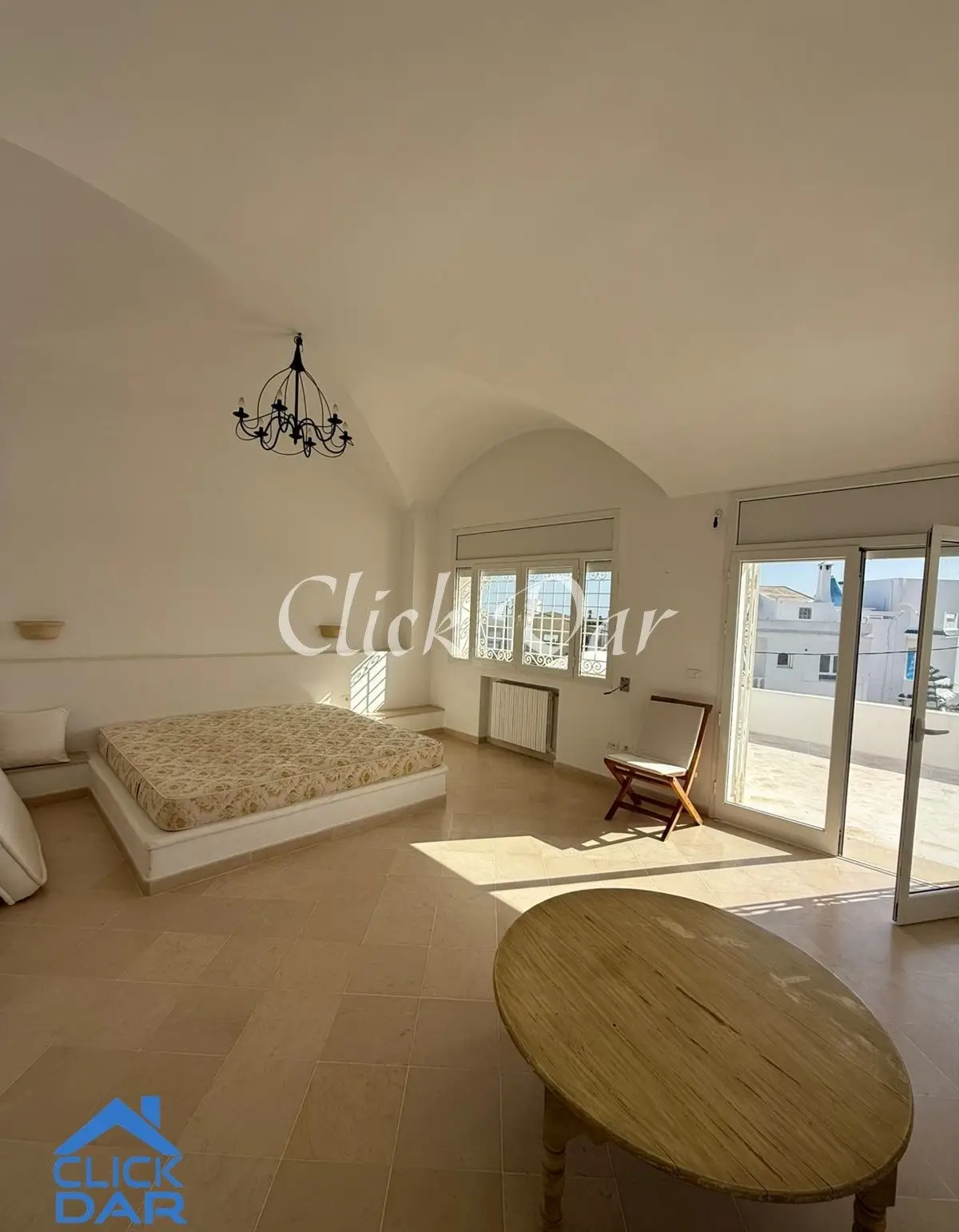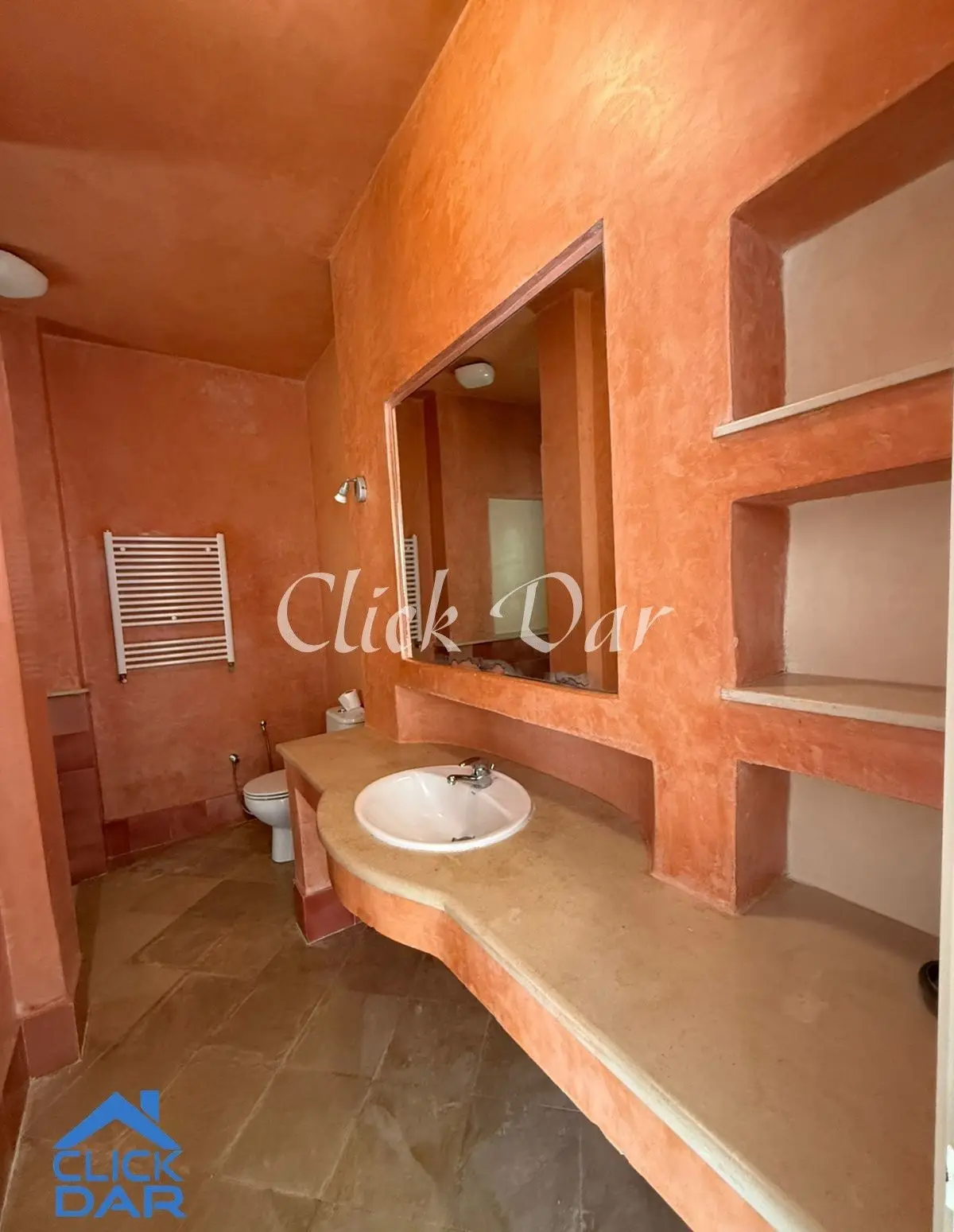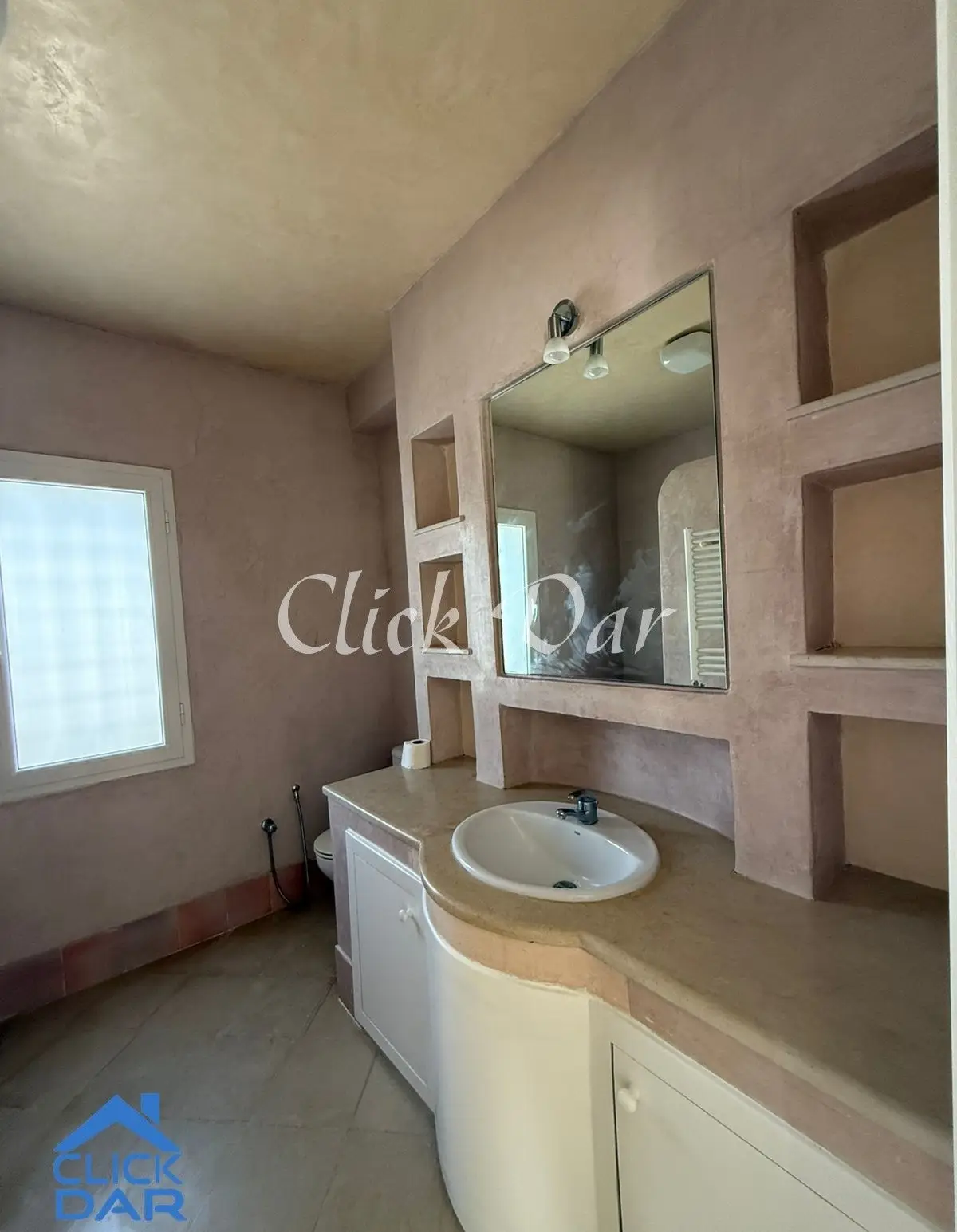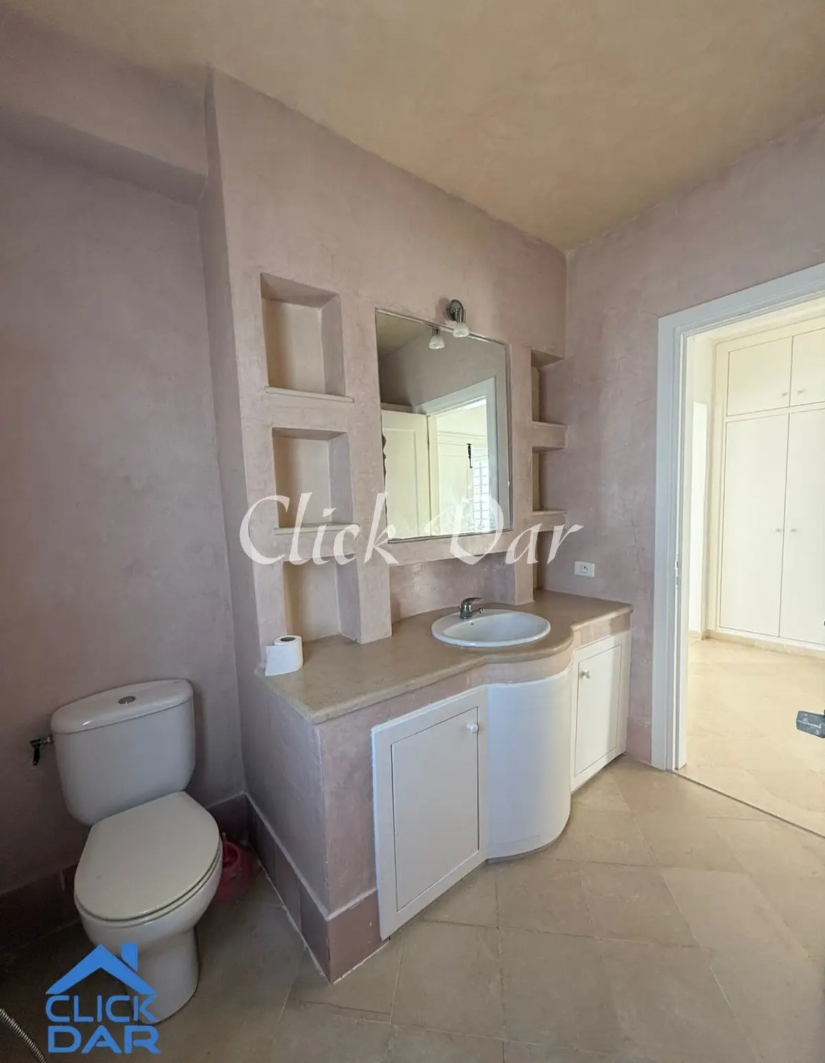 L’agence immobilière « Click Dar » vous propose pour la location annuelle, une villa en S+4 avec un vaste jardin, piscine et une terrasse vue mer, située à Hammamet Nord-cité Raboua.