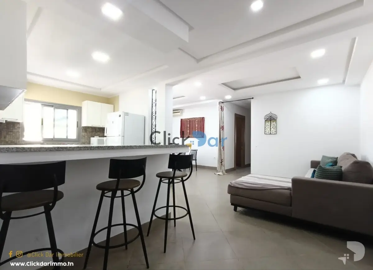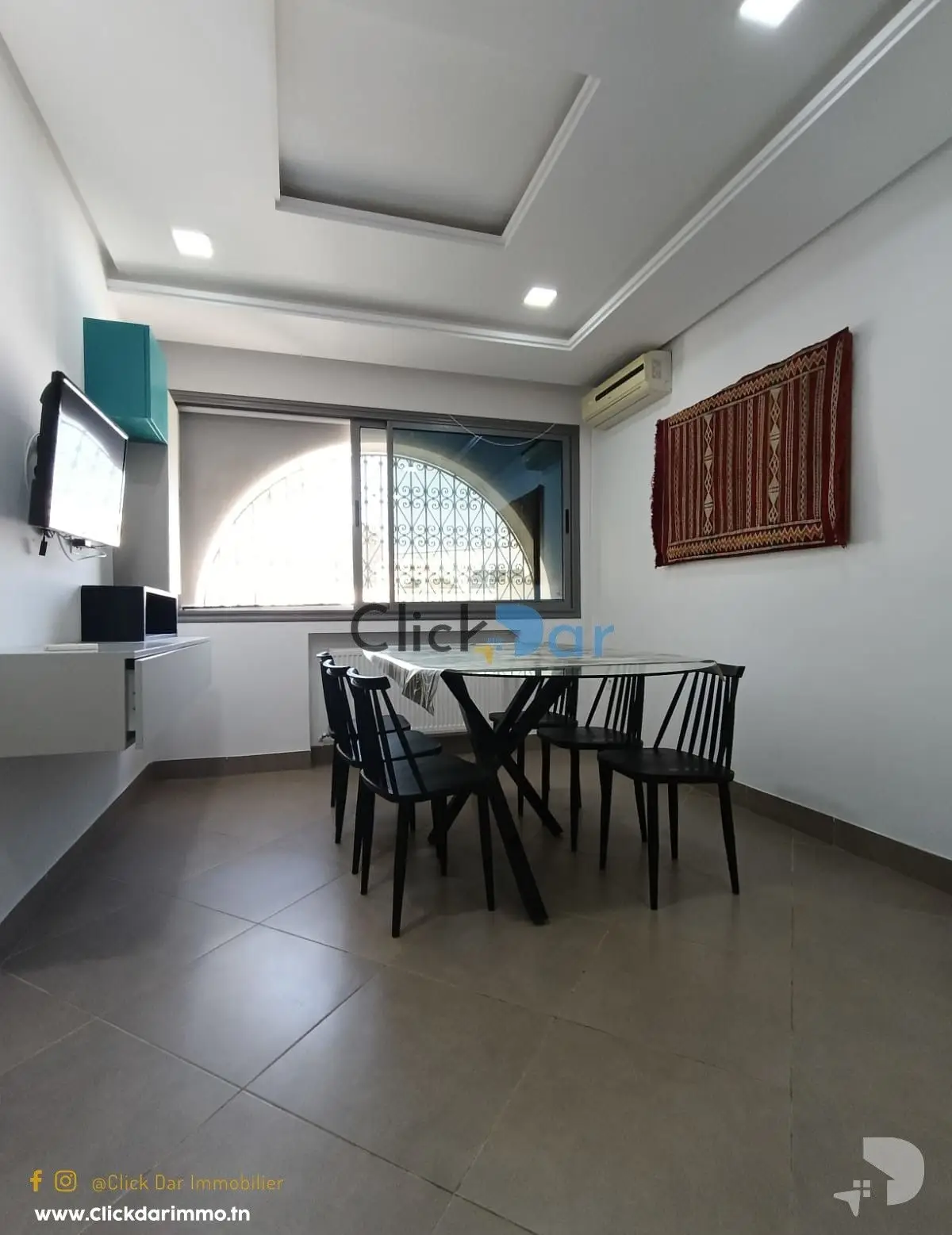 Click Dar Immobilier Hammamet vous propose pour la location annuelle , un appartement en S+2 au 1ér étage situé au centre d’Hammamet , 5 min à pied de plage la Sirène .