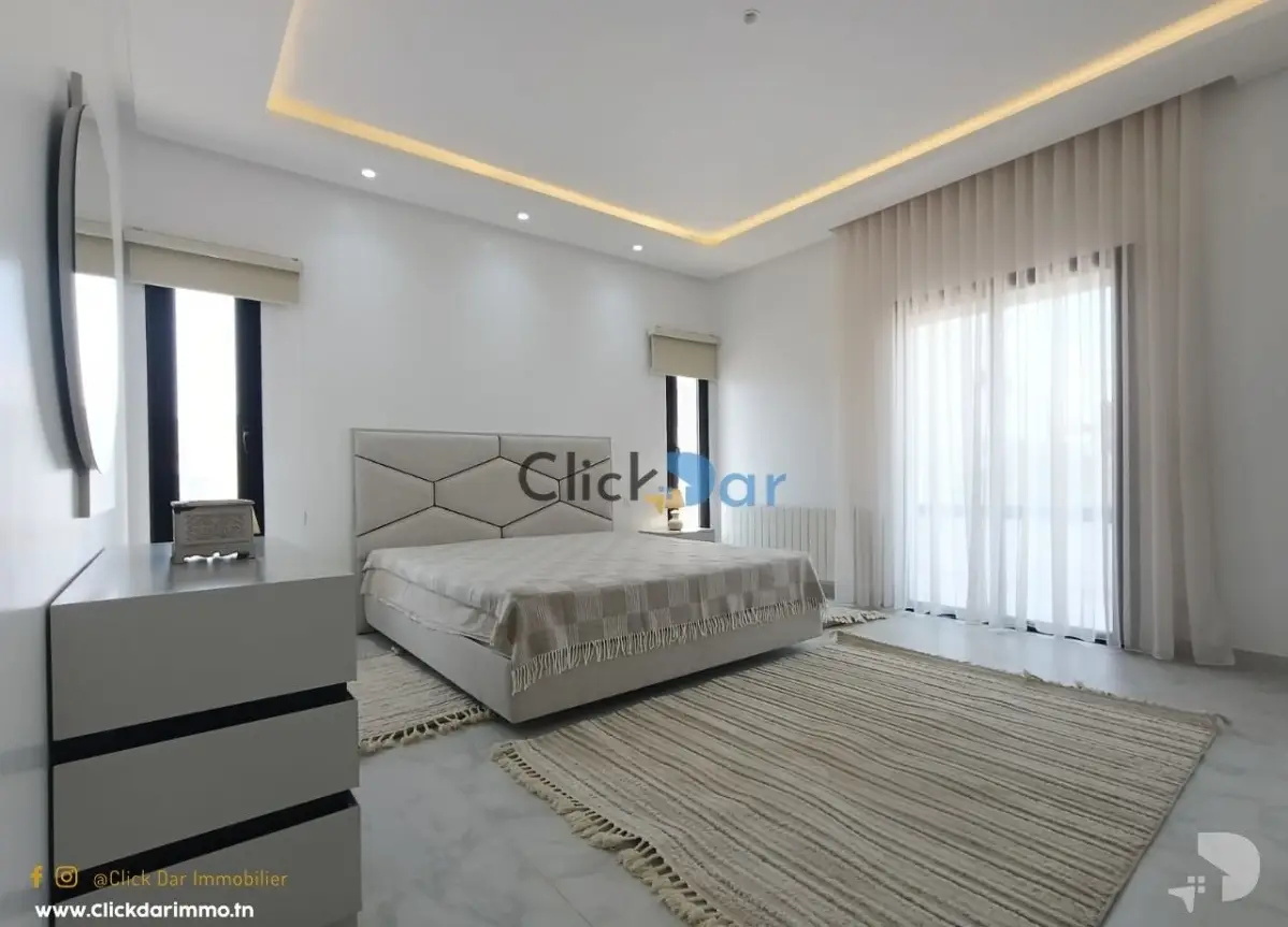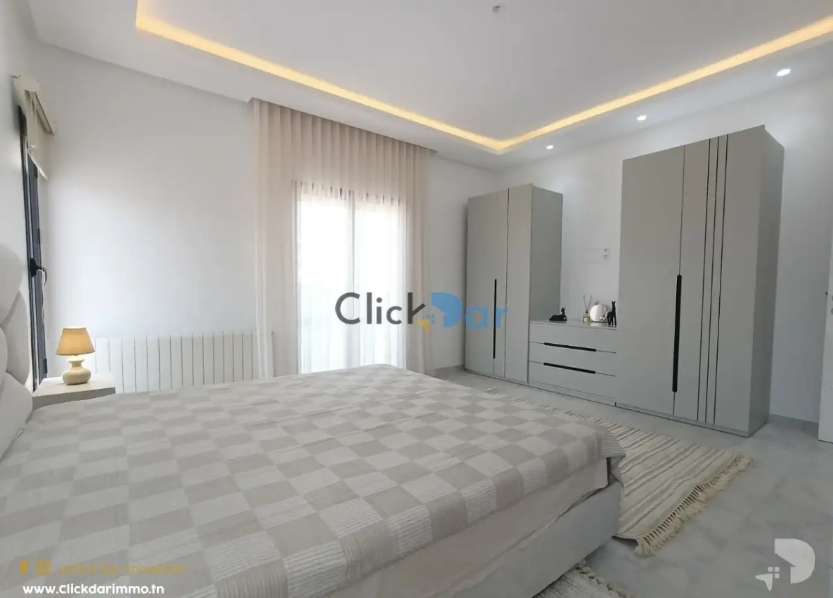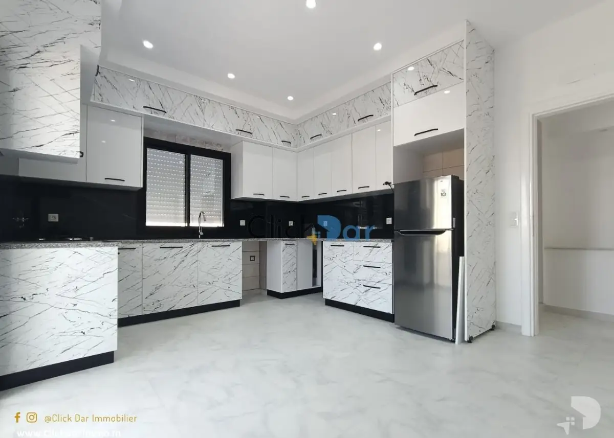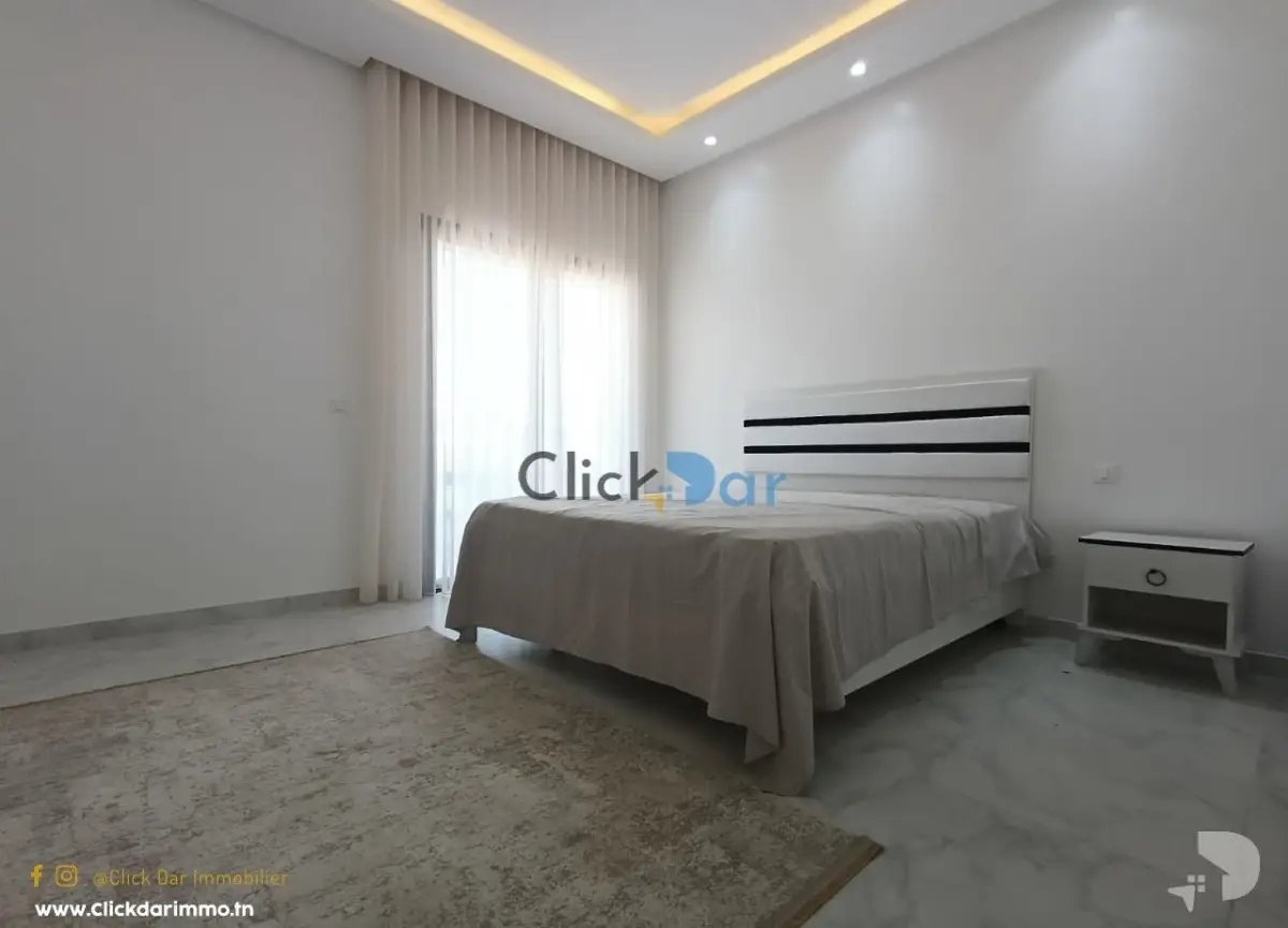 Click Dar immobilier vous propose pour la location annuelle, un appartement nouvelle construction en S+3, situé à Hammamet Nord, à 5 min à pieds de la plage.
