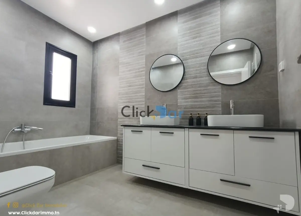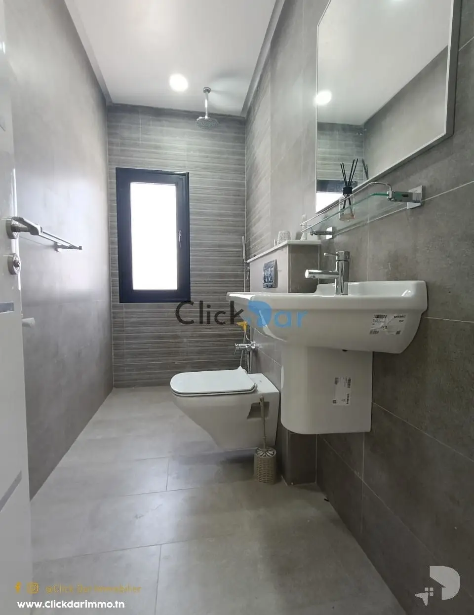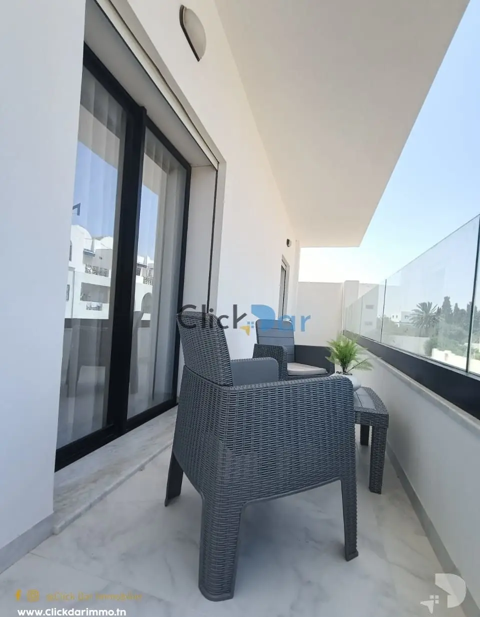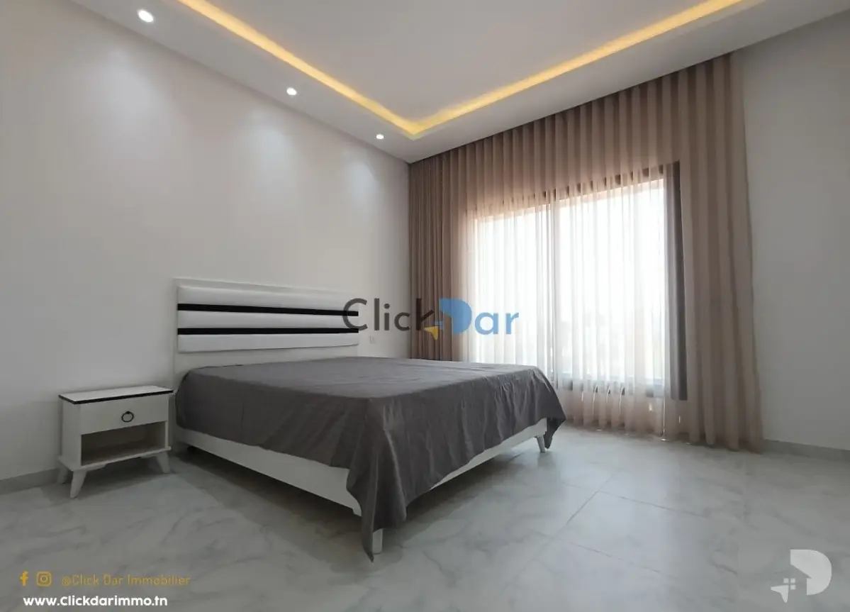 Click Dar immobilier vous propose pour la location annuelle, un appartement nouvelle construction en S+3, situé à Hammamet Nord, à 5 min à pieds de la plage.