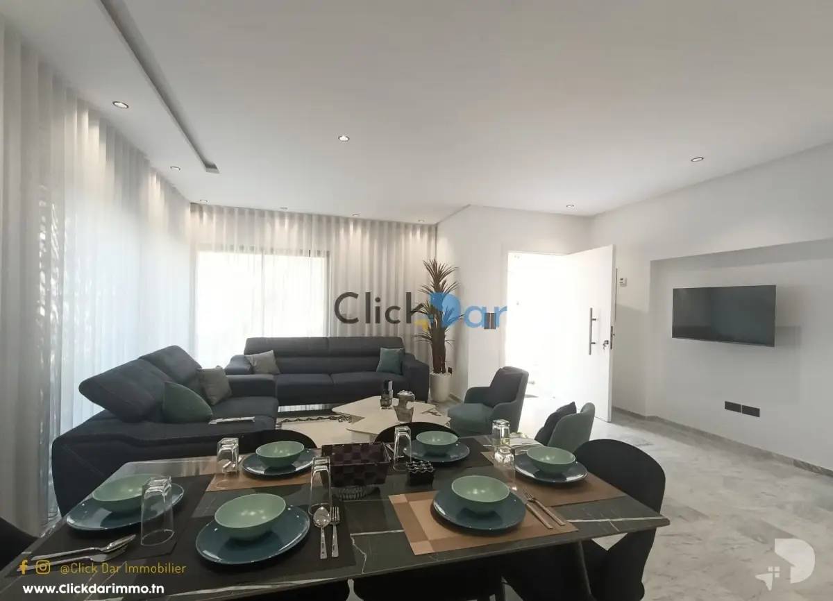 Click Dar Immobilier Hammamet vous propose pour la location annuelle, un RDC en S+3 avec Jardin nouvelle construction (jamais habité) situé à Hammamet Nord.