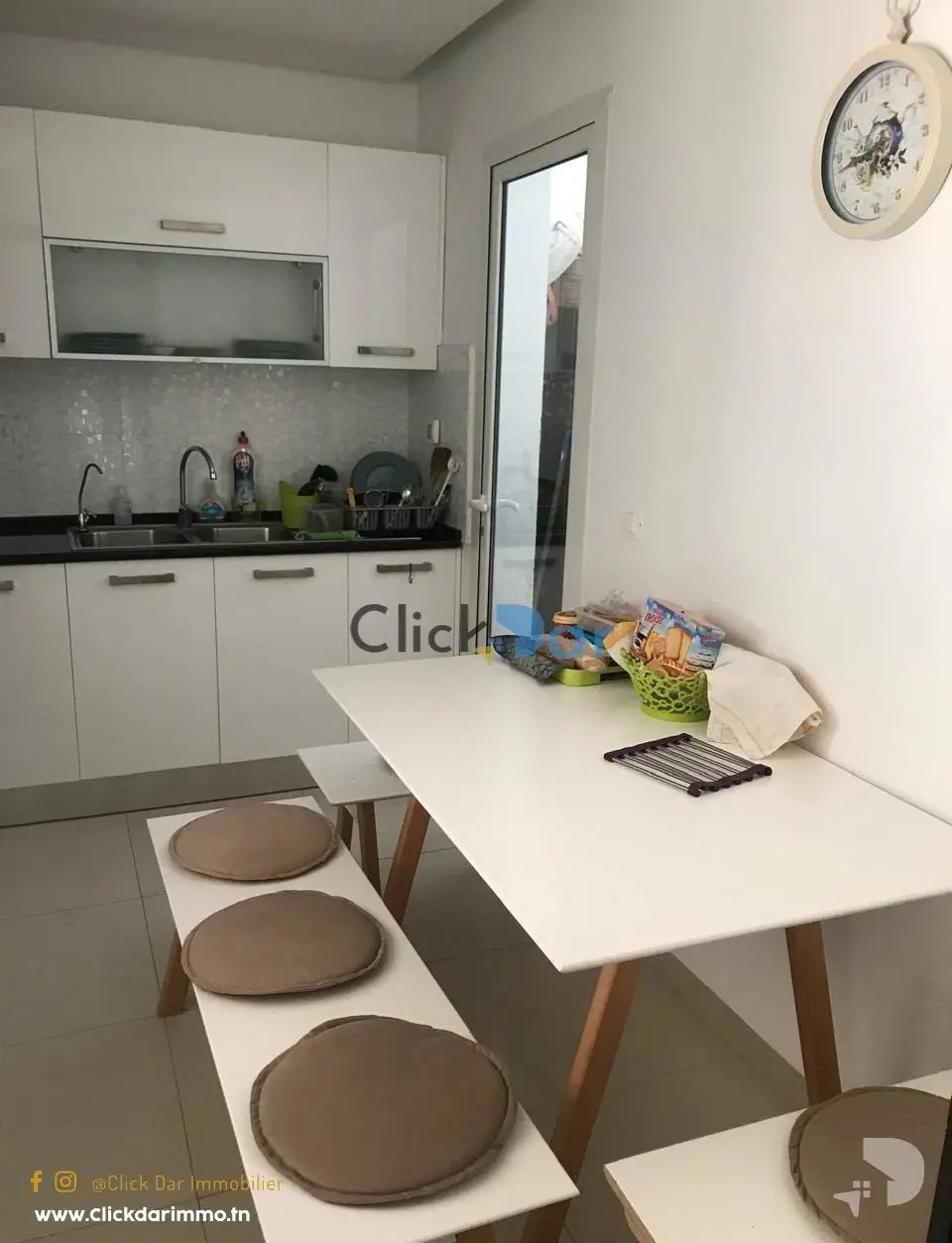 Click Dar Immobilier Hammamet vous propose pour la vente, un appartement en S+1 situé dans une résidence gardée à Hammamet Nord.