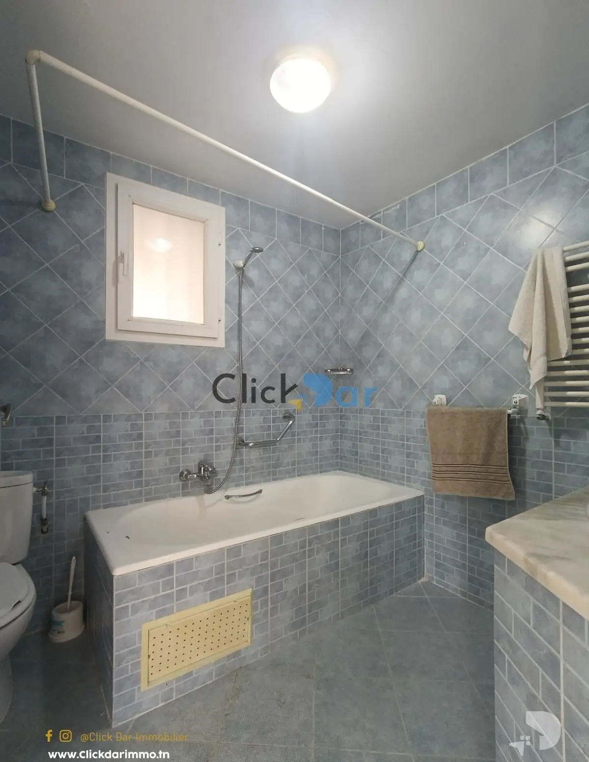 Click Dar Immobilier Hammamet vous propose pour la location annuelle un RDC indépendant en S+3 en plein pied, sans meuble, situé dans une dans une résidence sécurisée, situé à Hammamet à proximité hôtel Radisson (7minutes) à pied de la plage.