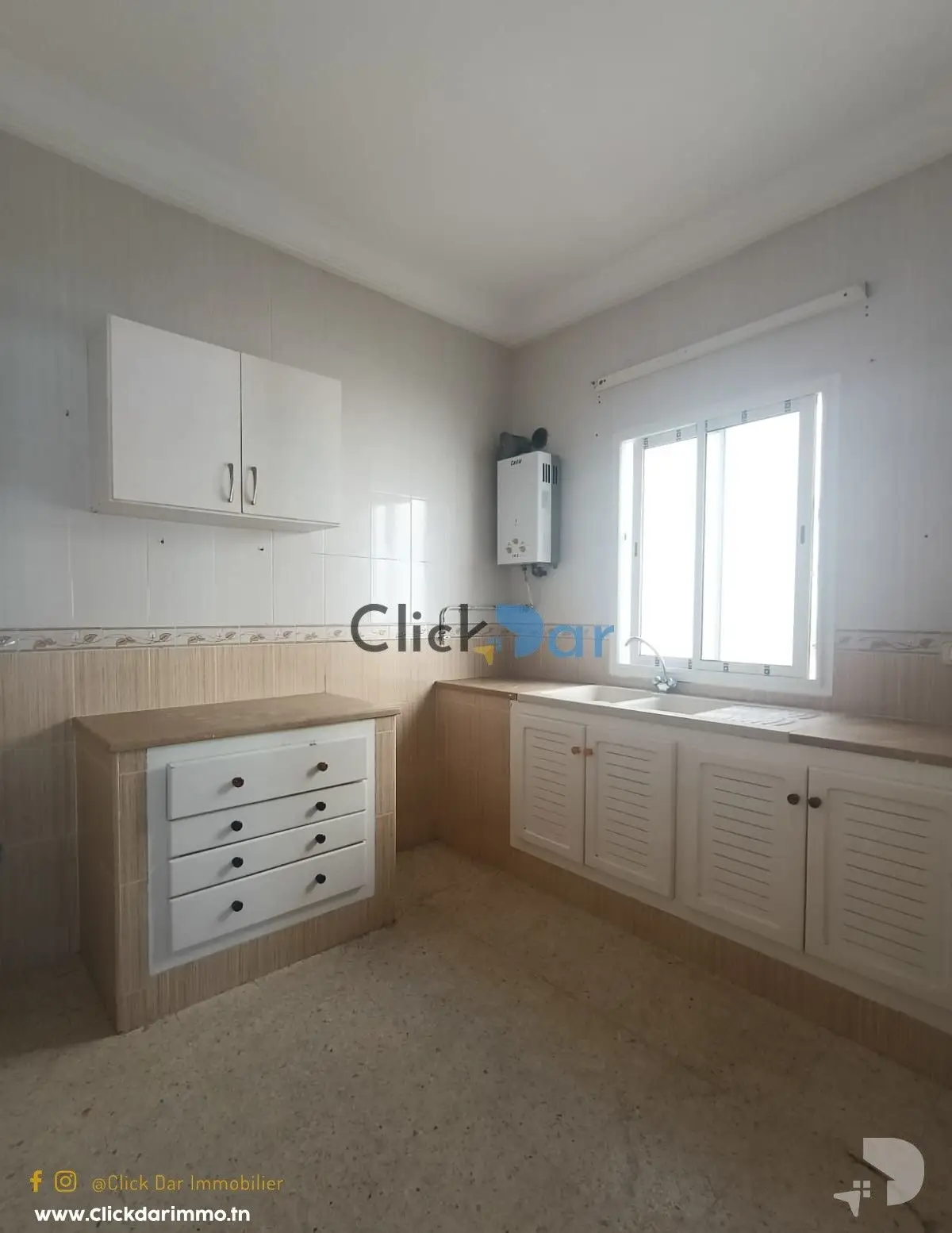 Click Dar Immobilier Hammamet vous propose pour la location annuelle, un appartement S+2 au 2éme étage situé à Hammamet