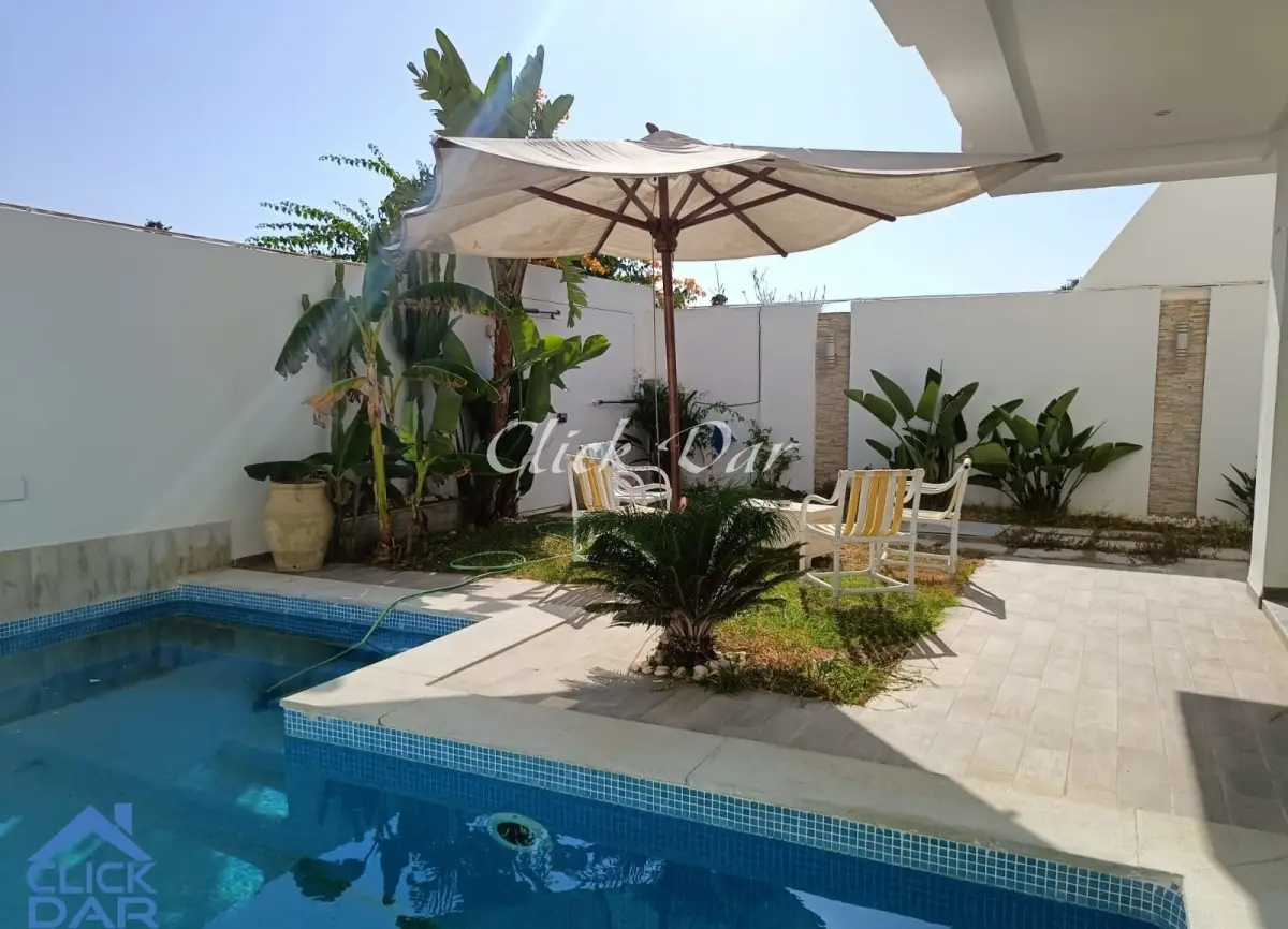 L’agence immobilière « Click Dar » vous propose pour la location annuelle, une villa en S+5 avec piscine, située à Hammamet Nord.