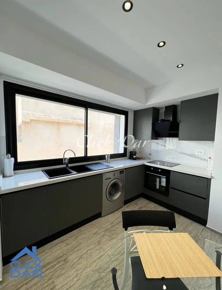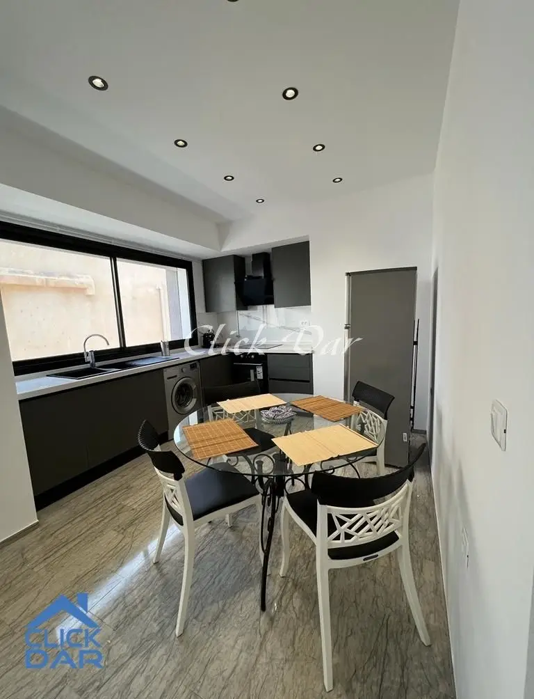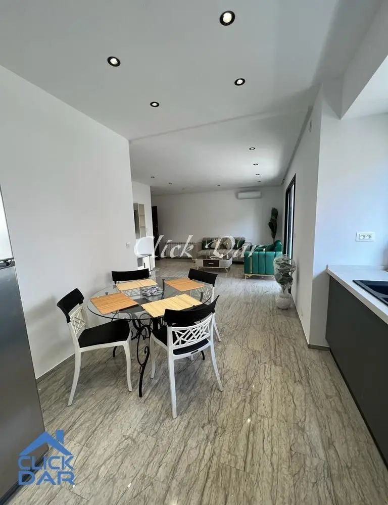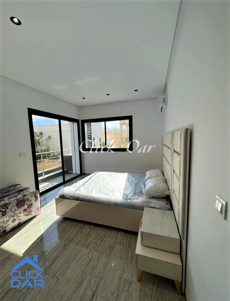 A louer, un appartement en S+2 au 1er étage, situé dans une résidence sécurisée et gardée à Hammamet.