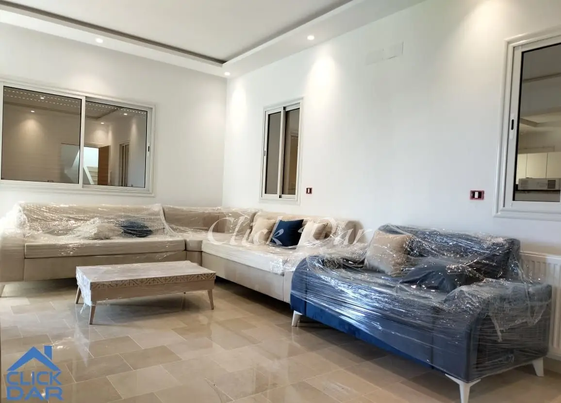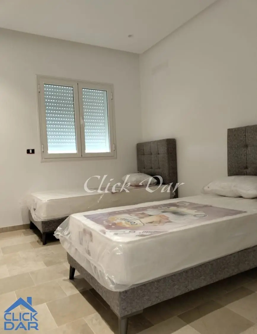 On vous propose pour la location annuelle, un appartement meublé en S+2 au 1er étage, situé à Hammamet.