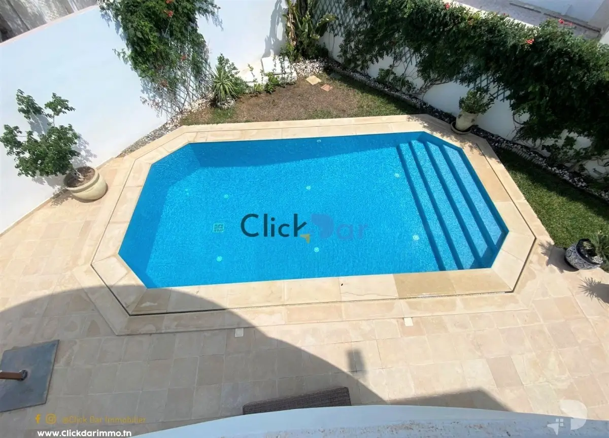 L’agence immobilière « Click Dar » vous propose pour la location annuelle, une villa en S+5, avec piscine, située à Hammamet Nord.