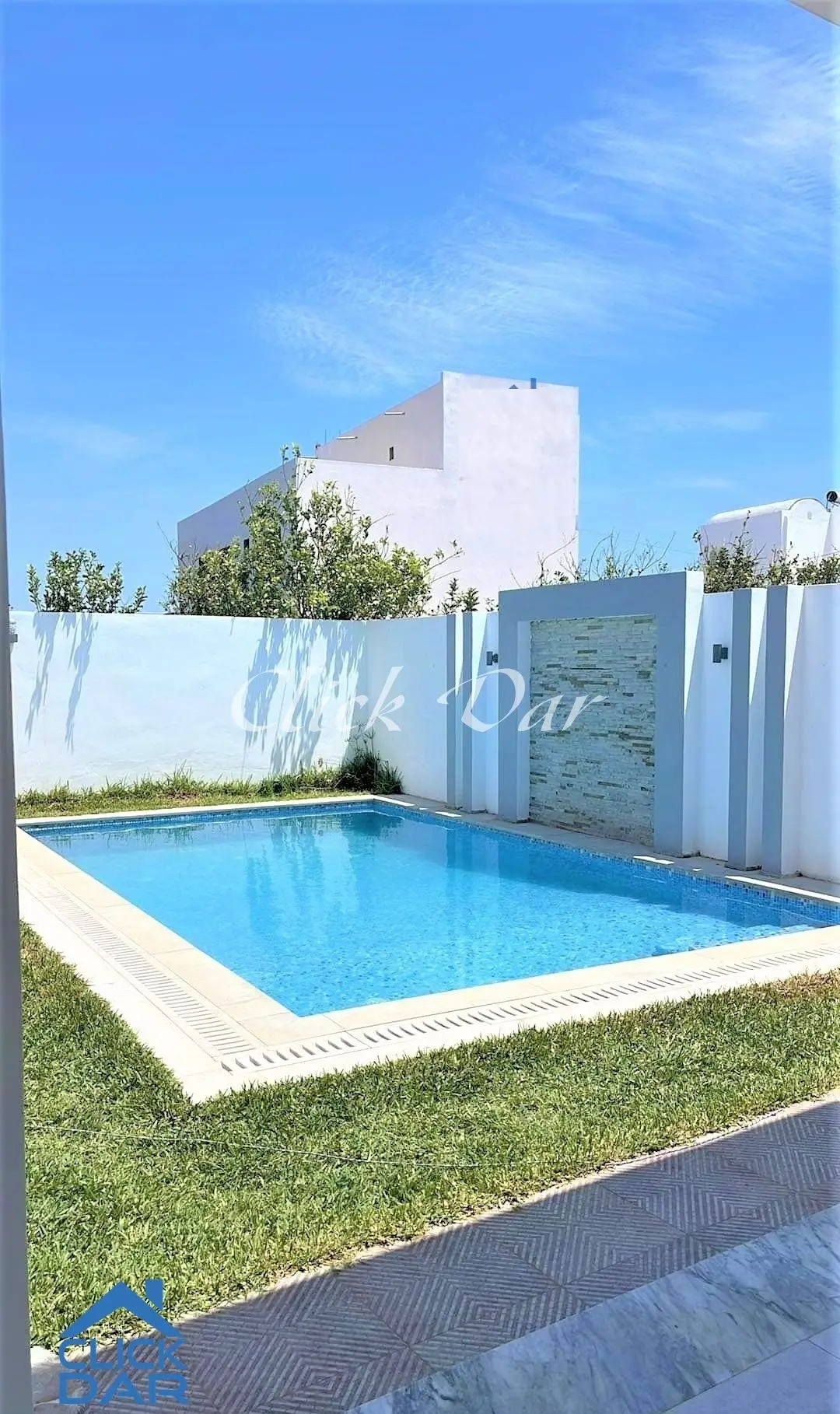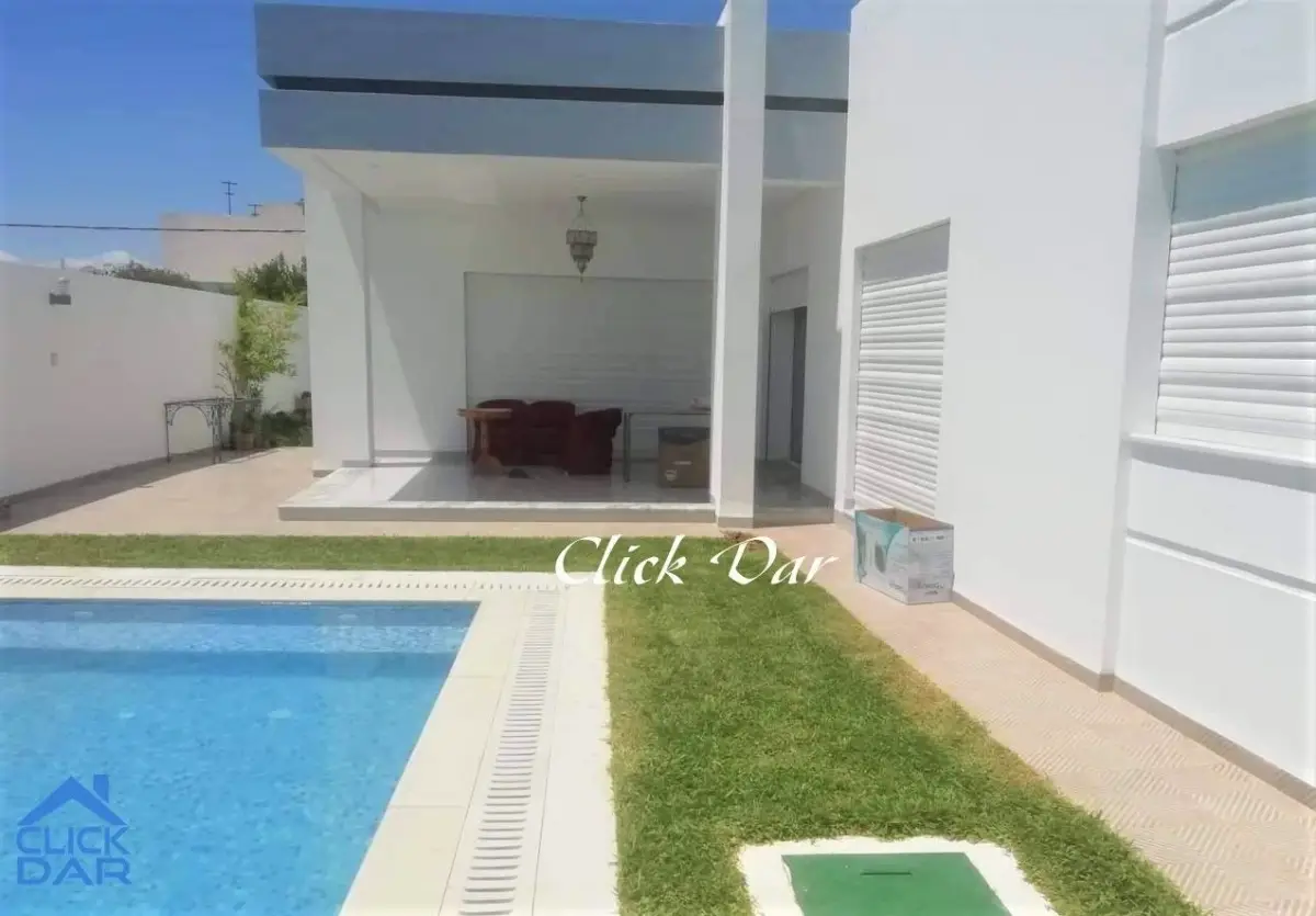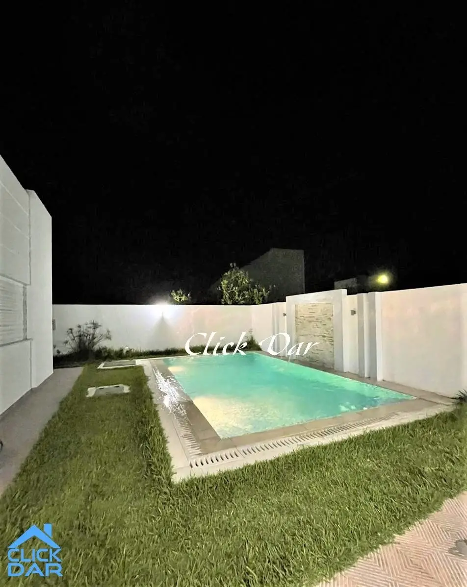 L’agence immobilière « Click Dar » vous propose pour la location estivale, une villa en S+3 avec piscine, située Hammamet- Théâtre.