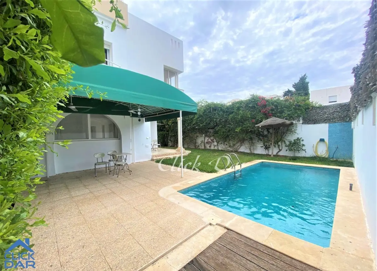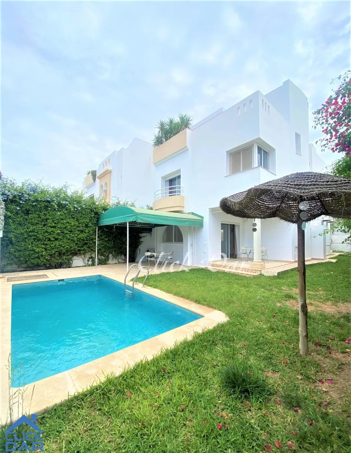 On vous propose pour la location estivale, une villa en S+5, sise dans une résidence gardée à la corniche de Hammamet, à2min à pieds de la plage.