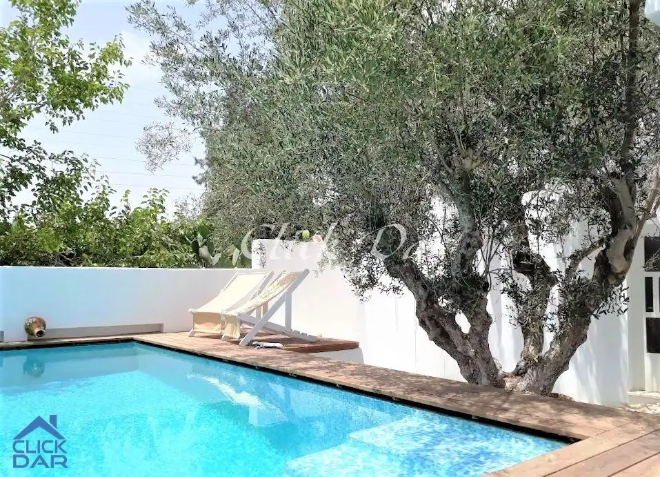 L’agence immobilière « Click Dar » vous propose pour la location estivale, une coquette villa en S+2 avec piscine à Craxi-Hammamet.