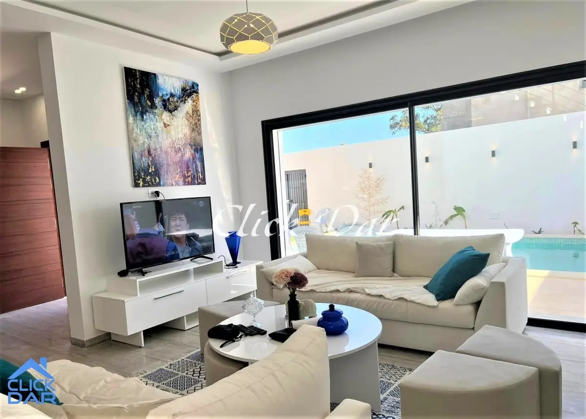 L’agence immobilière « Click Dar » vous propose pour la location courte durée, une villa en S+4 avec piscine, située à Hammamet.
