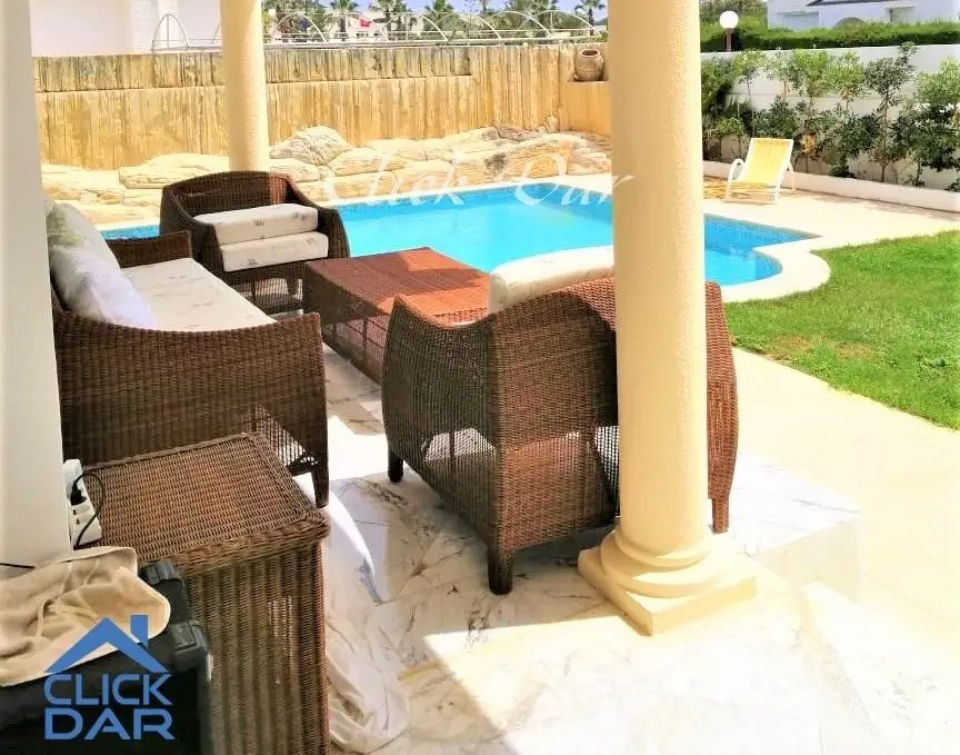 On vous propose pour la location estivale, une villa en S+4, avec un jardin, une piscine et un garage, située à Yasmine Hammamet, à 2 min à pieds de la plage et de la Marina.