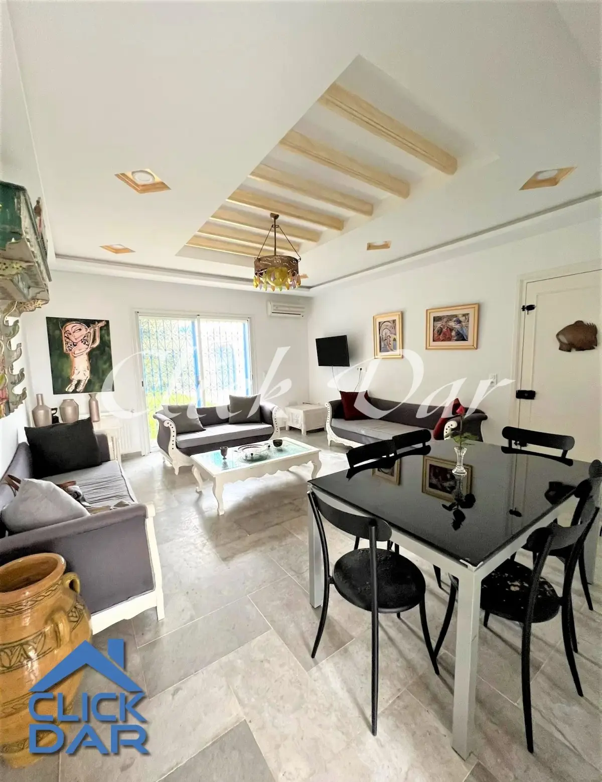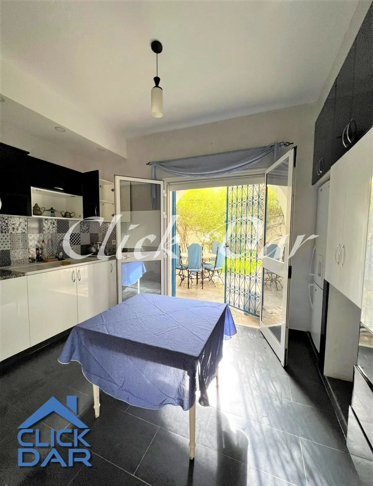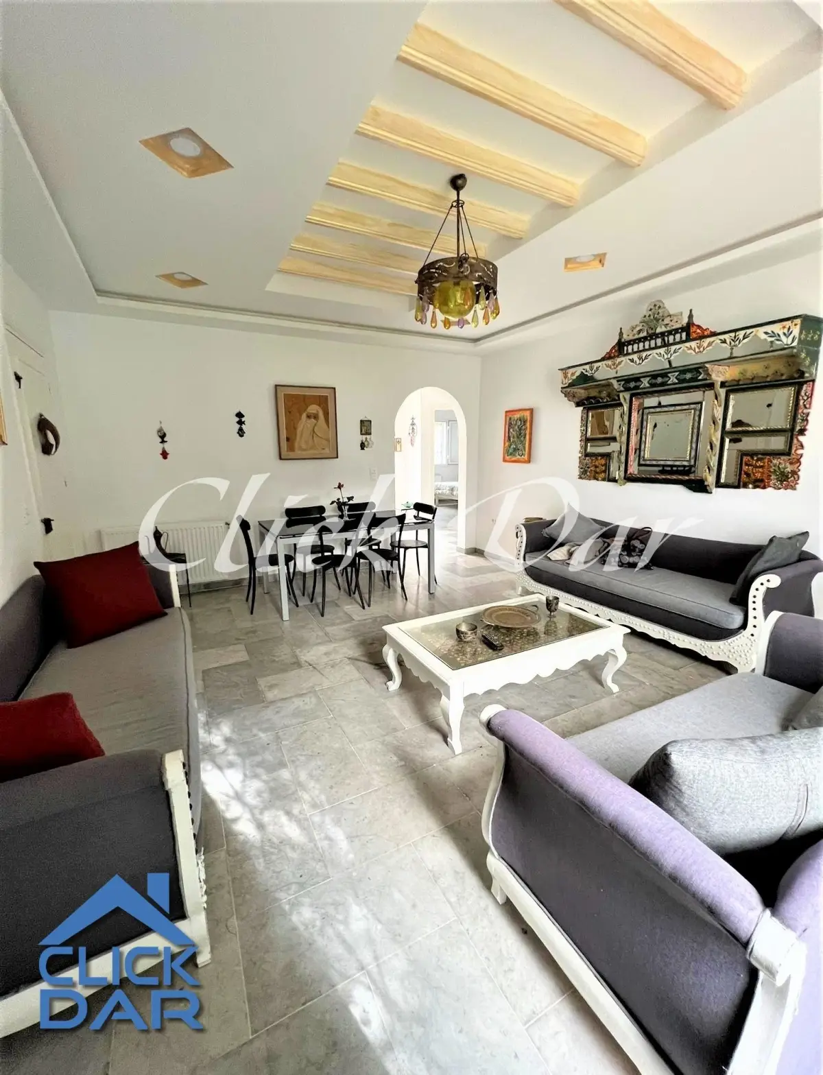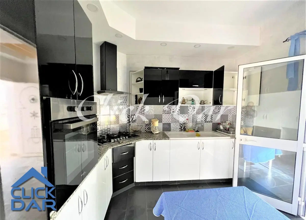 L’agence immobilière « Click Dar » vous propose pour la location annuelle, une villa en S+4 avec jardin, située à Hammamet (quelques minutes de la plage)