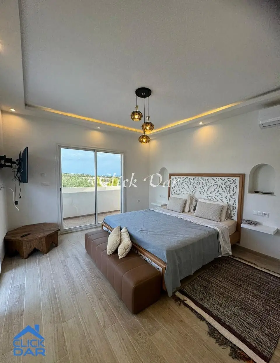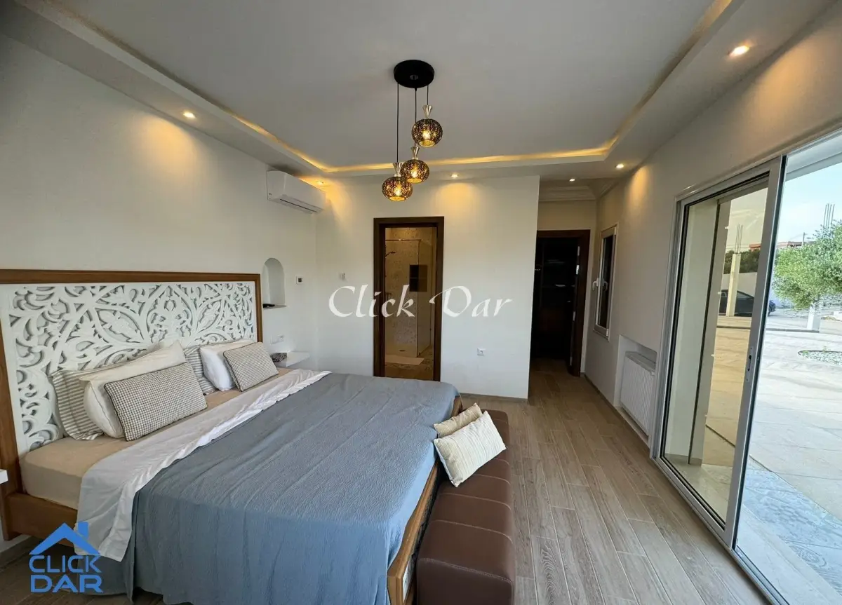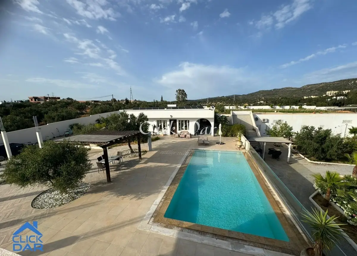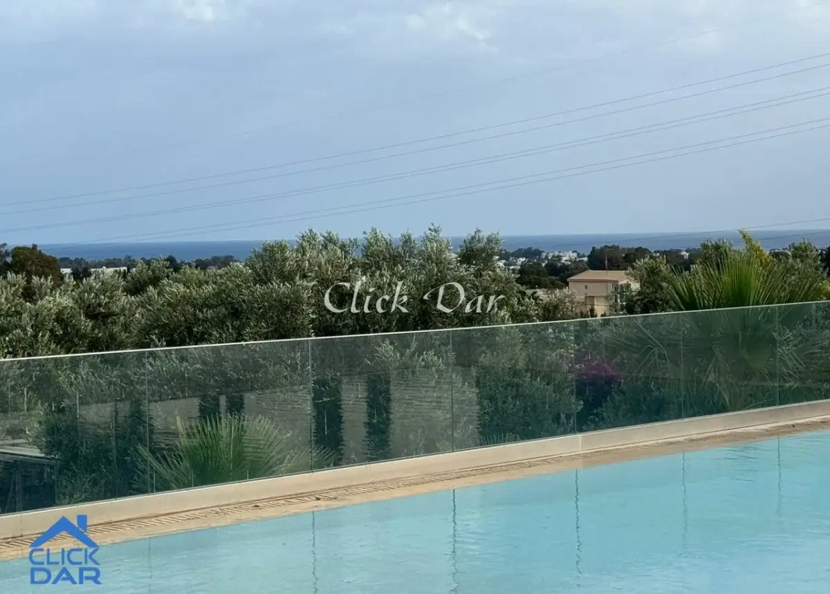 On vous propose cet espace extérieur dont un appartement et une piscine avec une vue panoramique sur mer situé à Hammamet