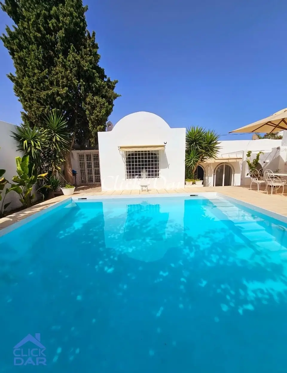 L’agence immobilière « Click Dar » vous propose pour la location estivale, une villa avec piscine, en plain pieds, à Hammamet.