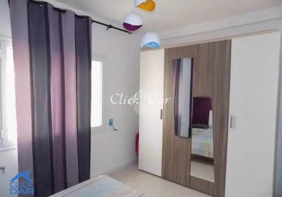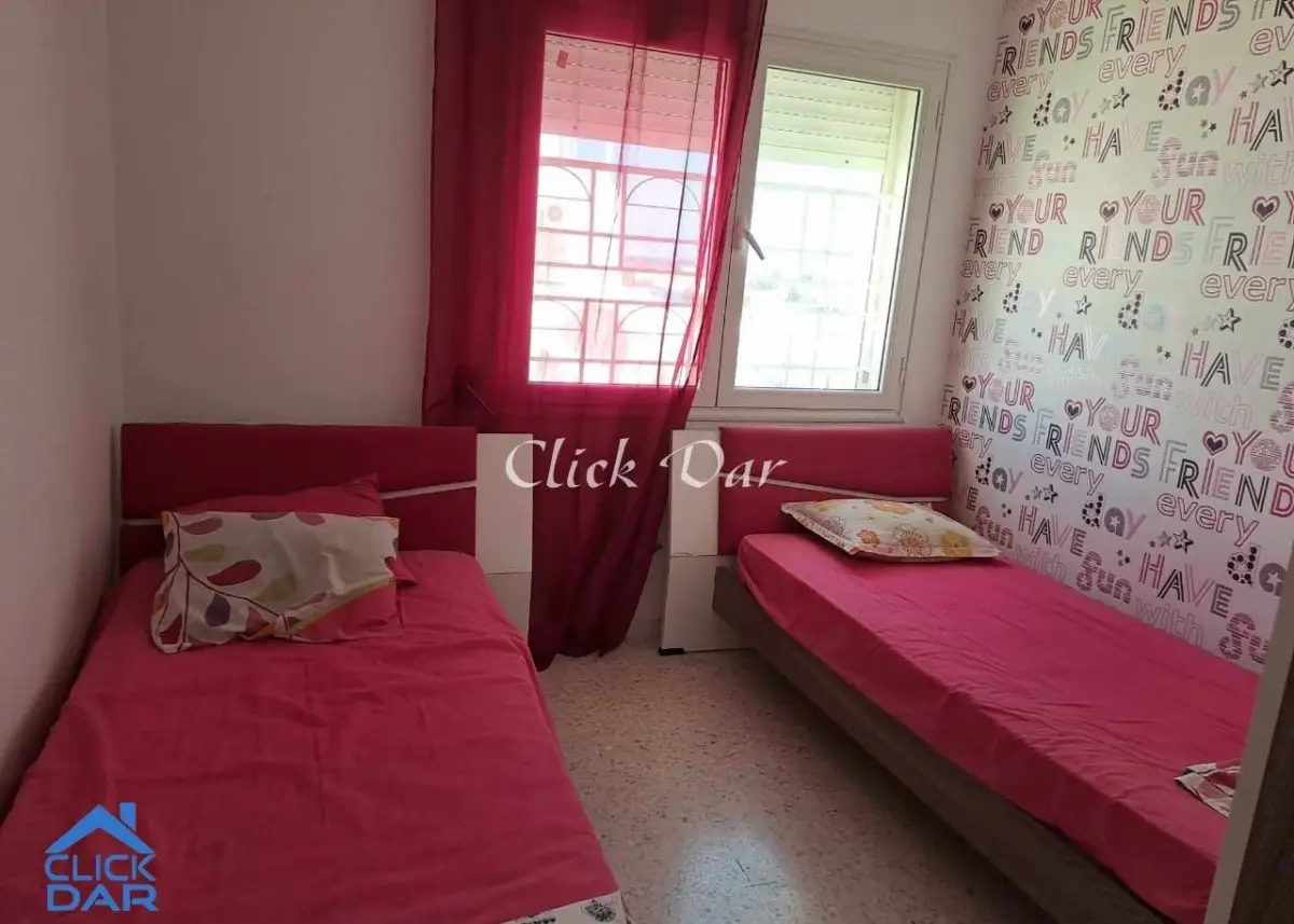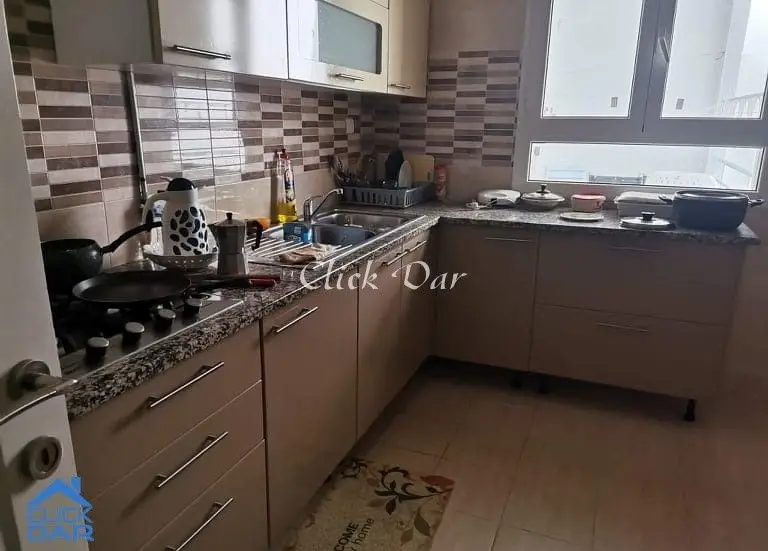 Pour la location annuelle: un appartement en S+2 avec terrasse vue mer au 5ème étage, situé dans une résidence sécurisée et gardée à l’AFH Mrezga.