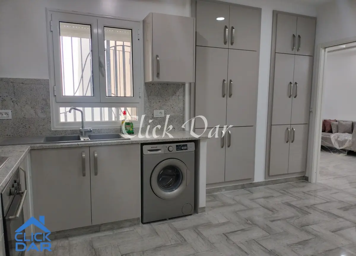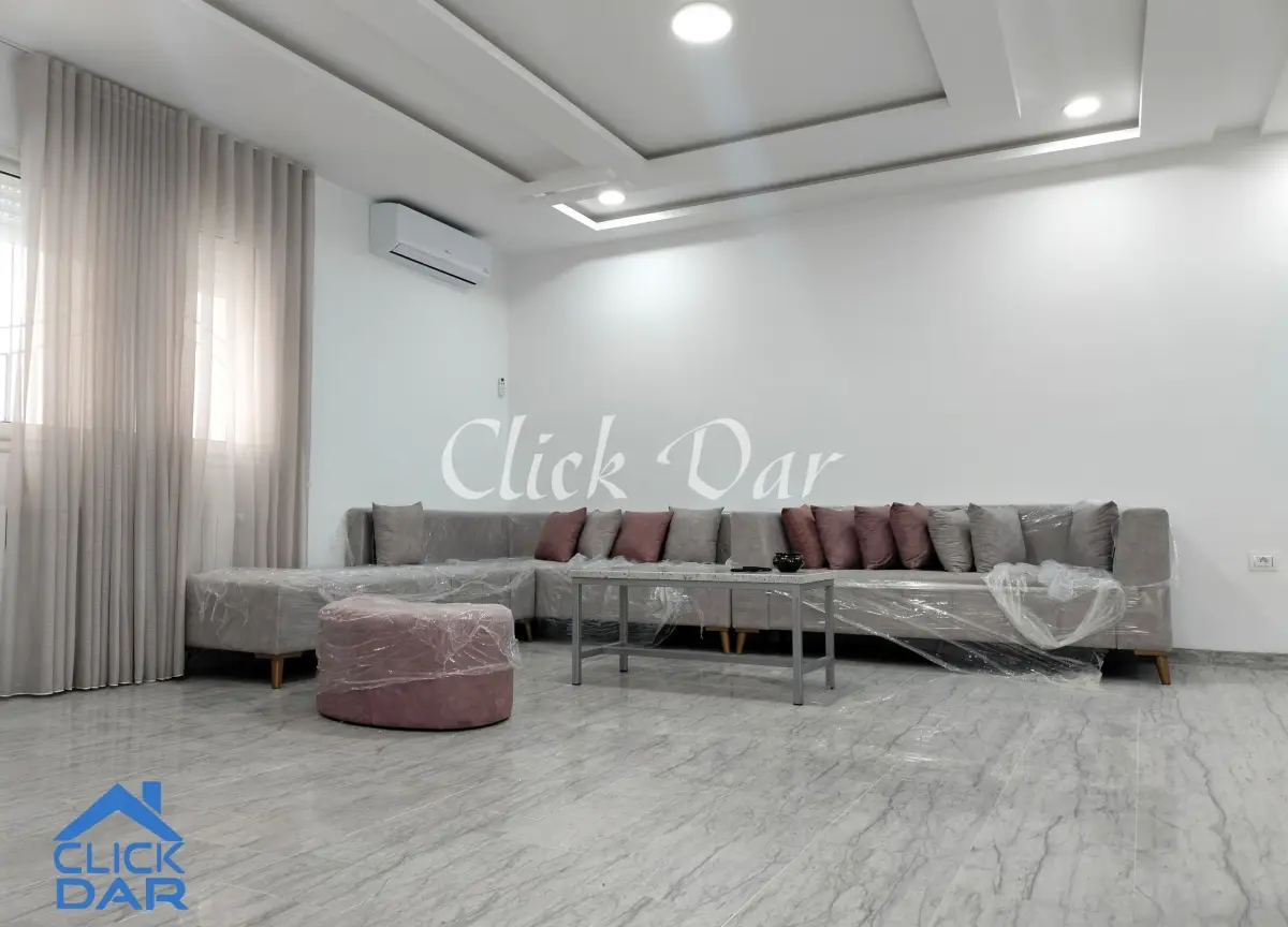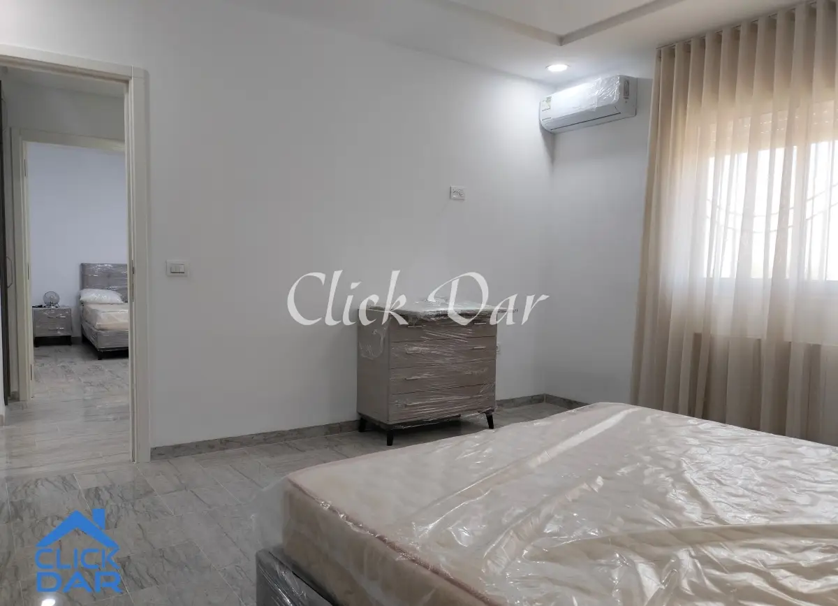 L’agence Click Dar Hammamet pour la location annuelle un appartement en S+2 au 1er étage situé à Hammamet.