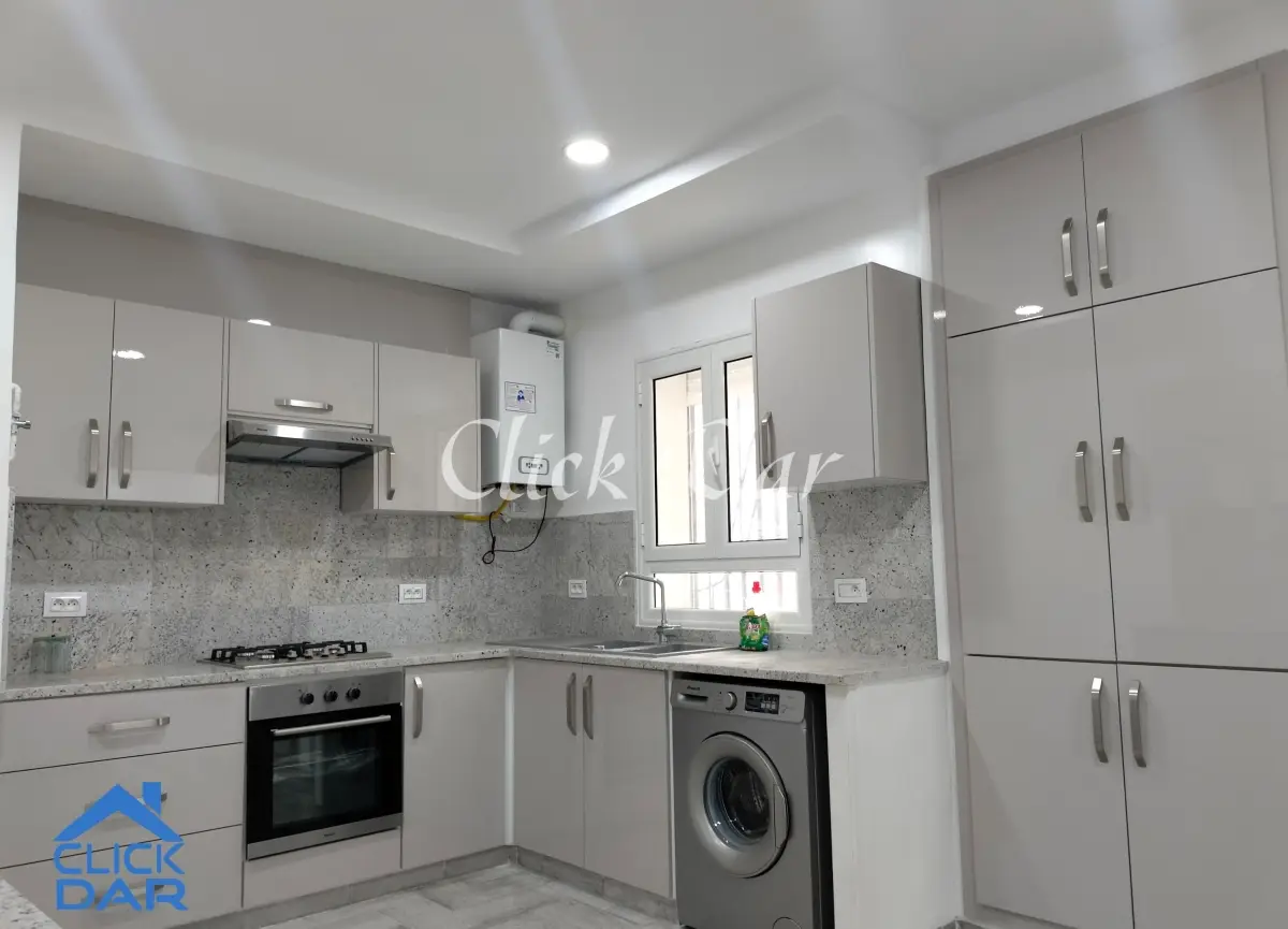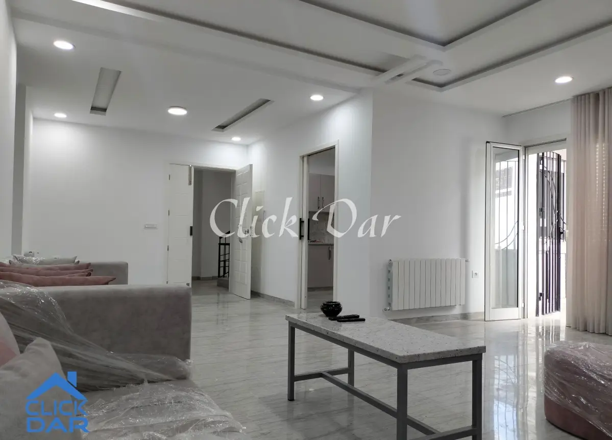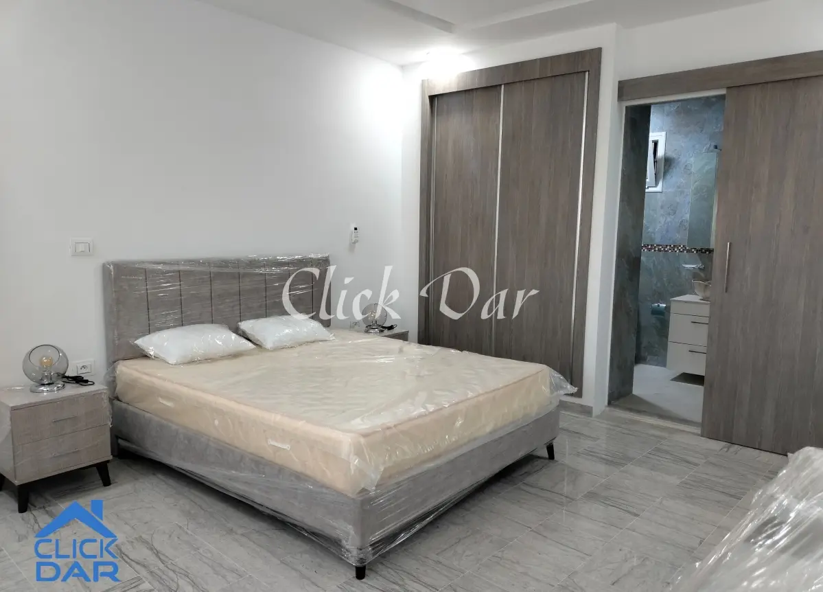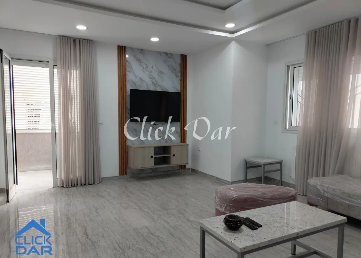 L’agence Click Dar Hammamet pour la location annuelle un appartement en S+2 au 1er étage situé à Hammamet.