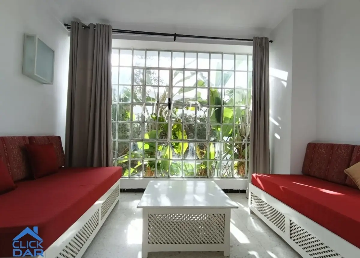 Salon-salle à manger, 02 Chambres à coucher, Cuisine, Salle d’eau, jardin et abri de voiture