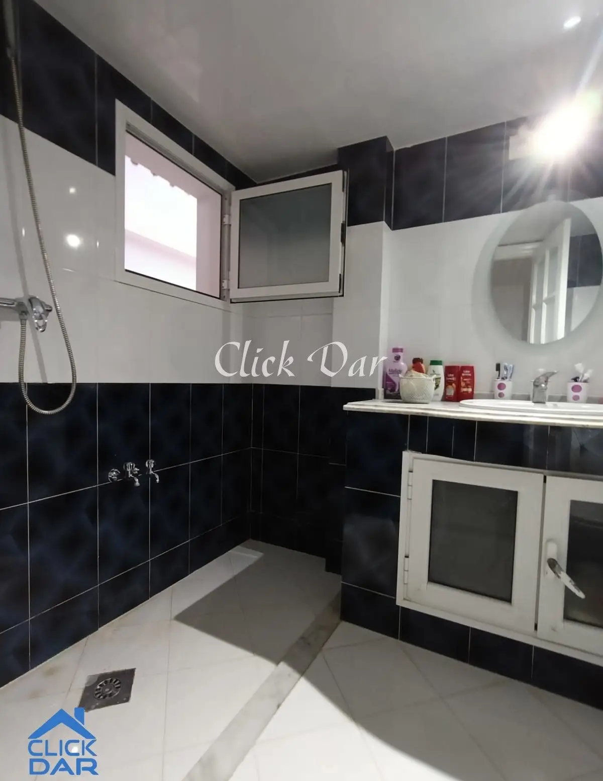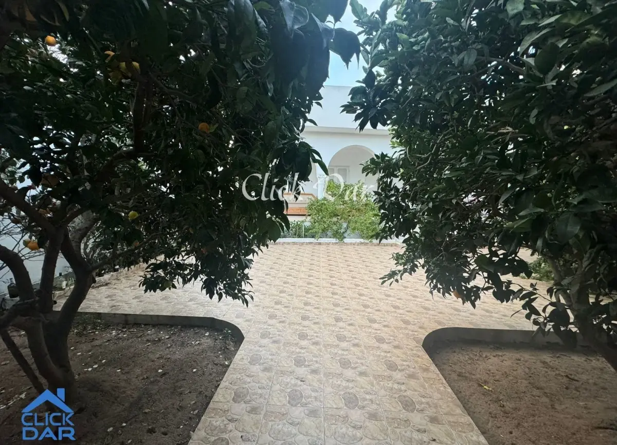 L’agence immobilière Click Dar, vous propose pour la location annuelle, une maison avec jardin et abri de voiture, située dans une zone calme à Hammamet.