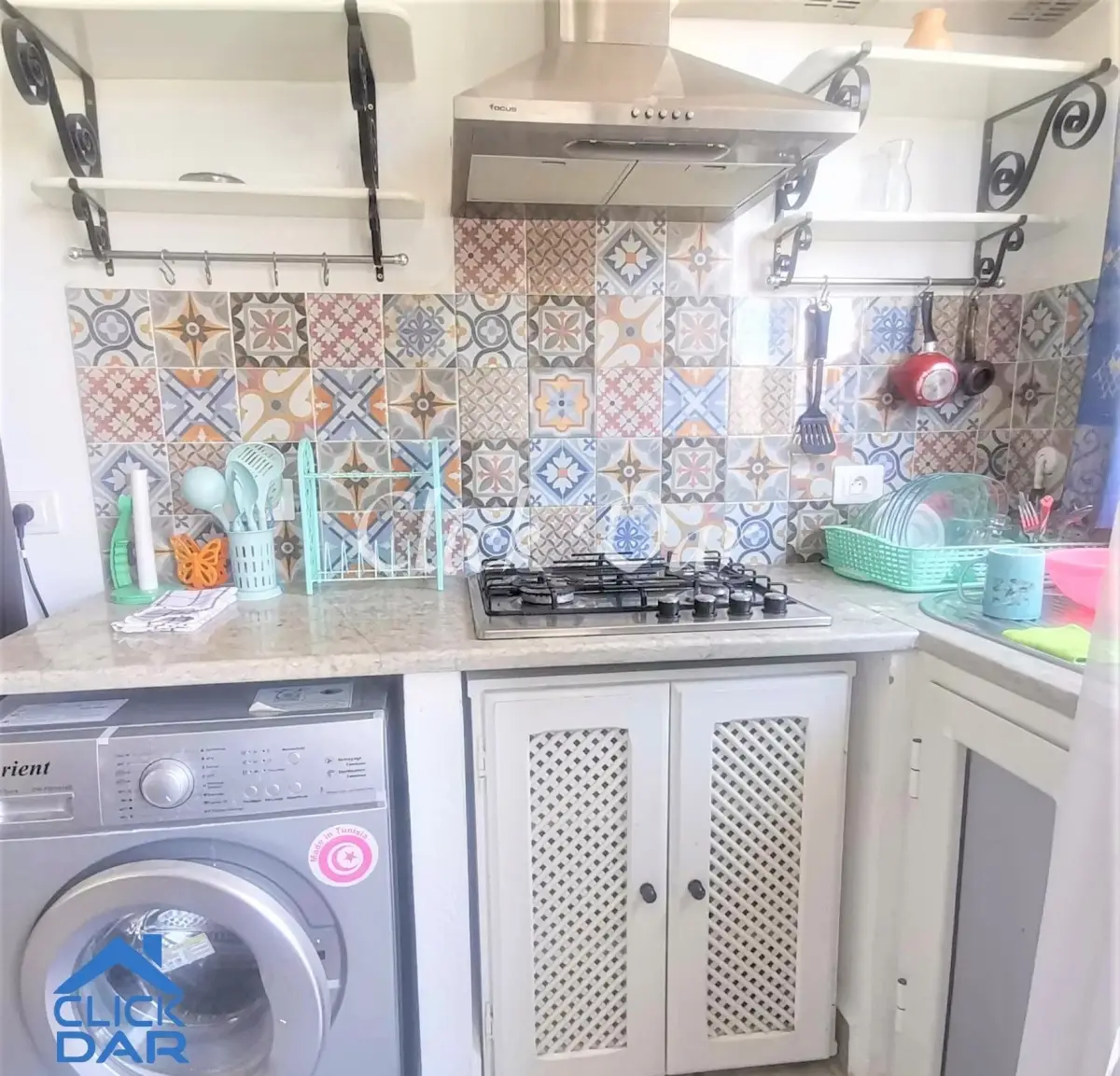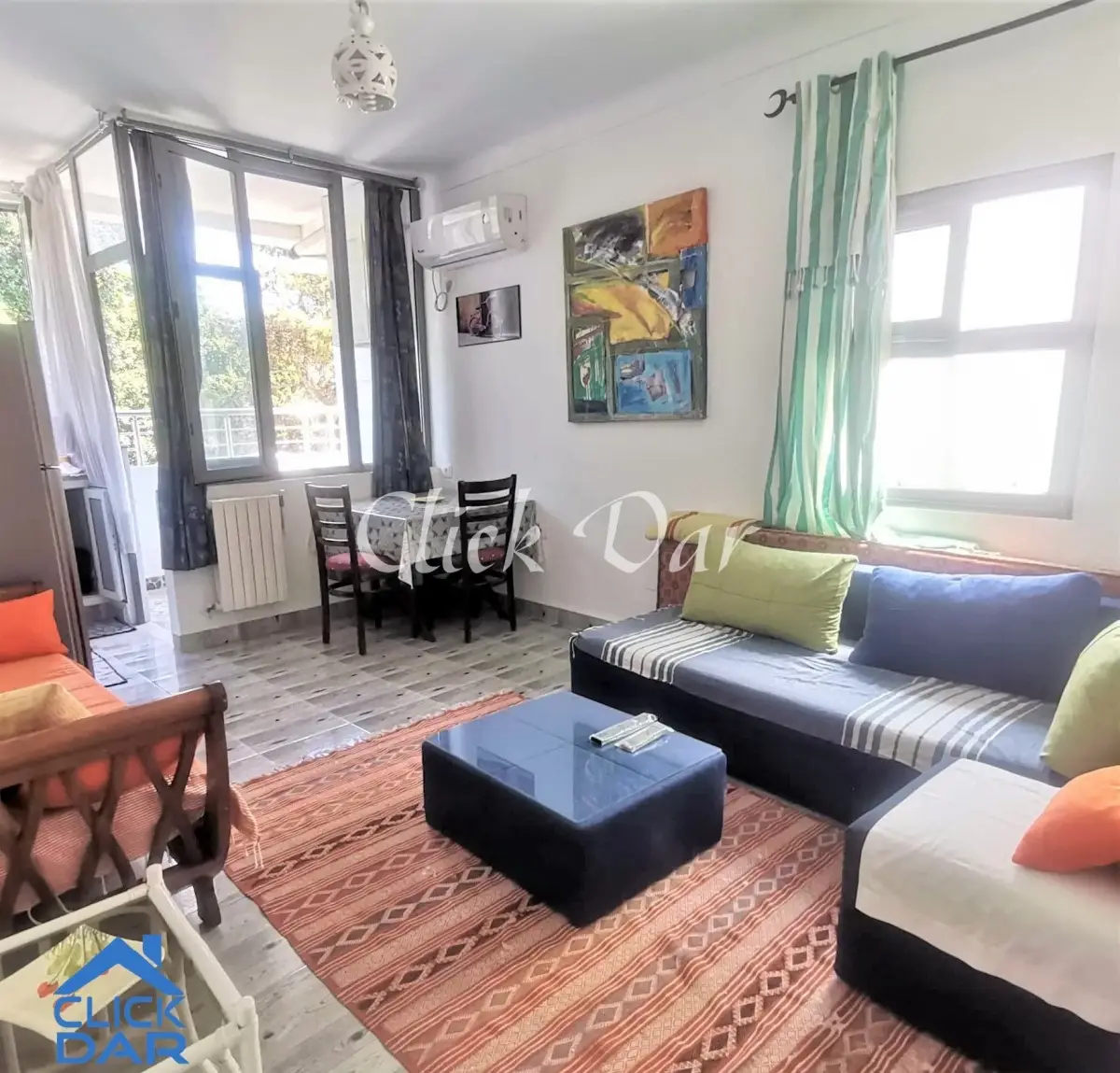 Il se compose d’un salon, une kitchenette équipée et aménagée, une chambre à coucher et une salle de bain.