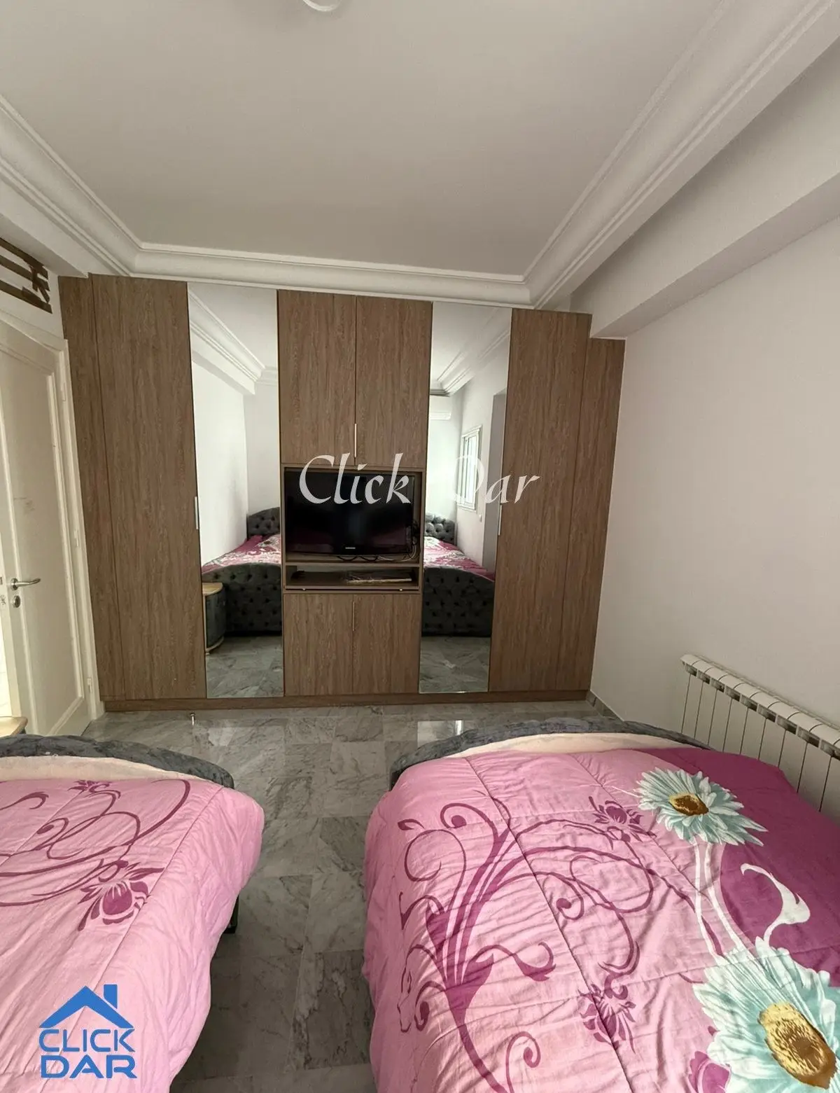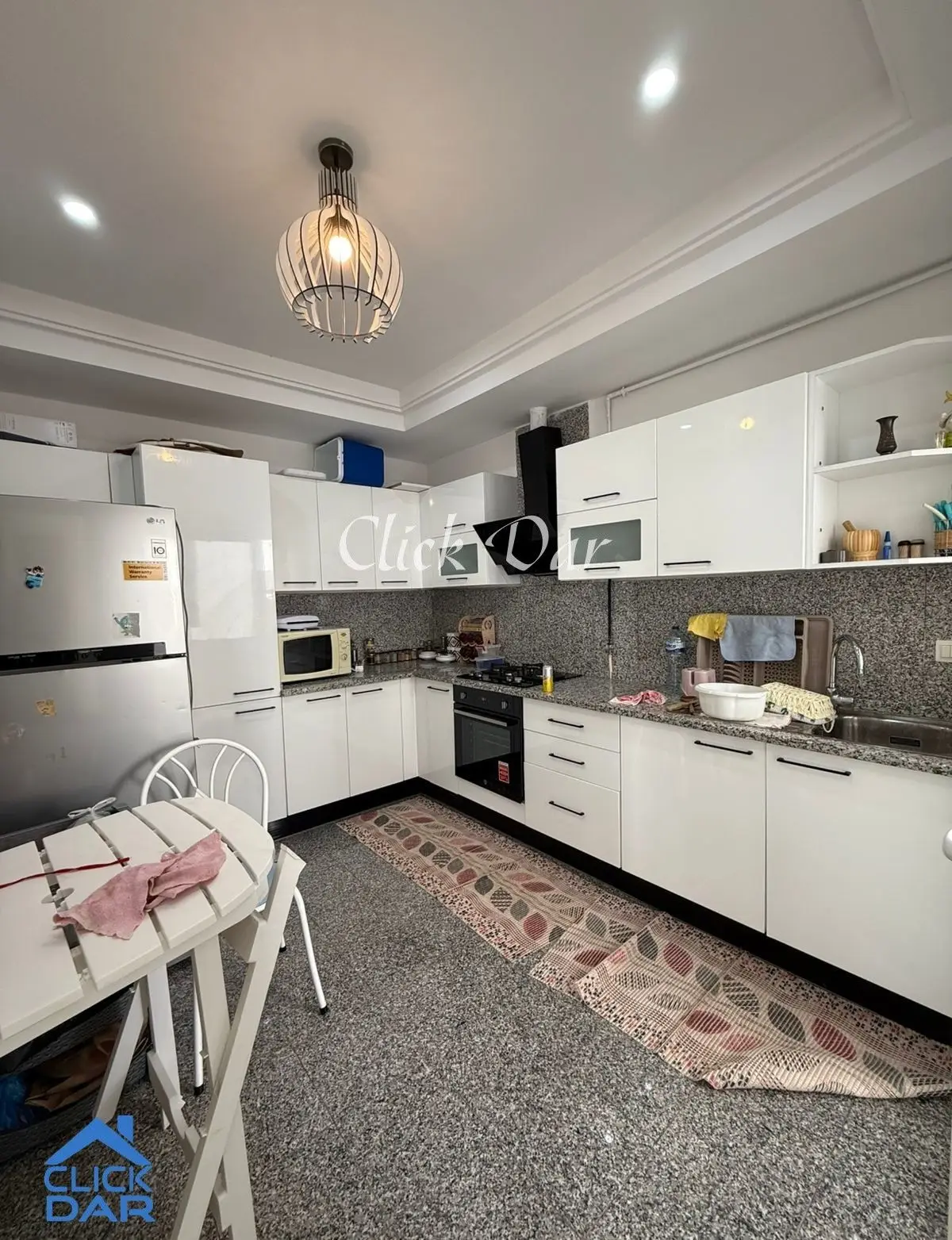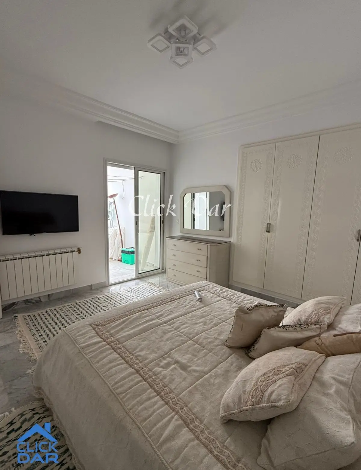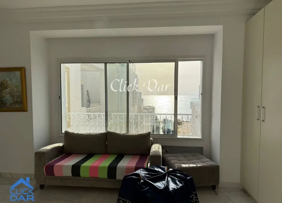 Pour la location annuelle, l’agence immobilière « Click Dar » vous propose un appartement en S+2 avec une terrasse vue mer, situé au 2ème et dernier étage dans une résidence pieds dans l’eau à Hammamet.