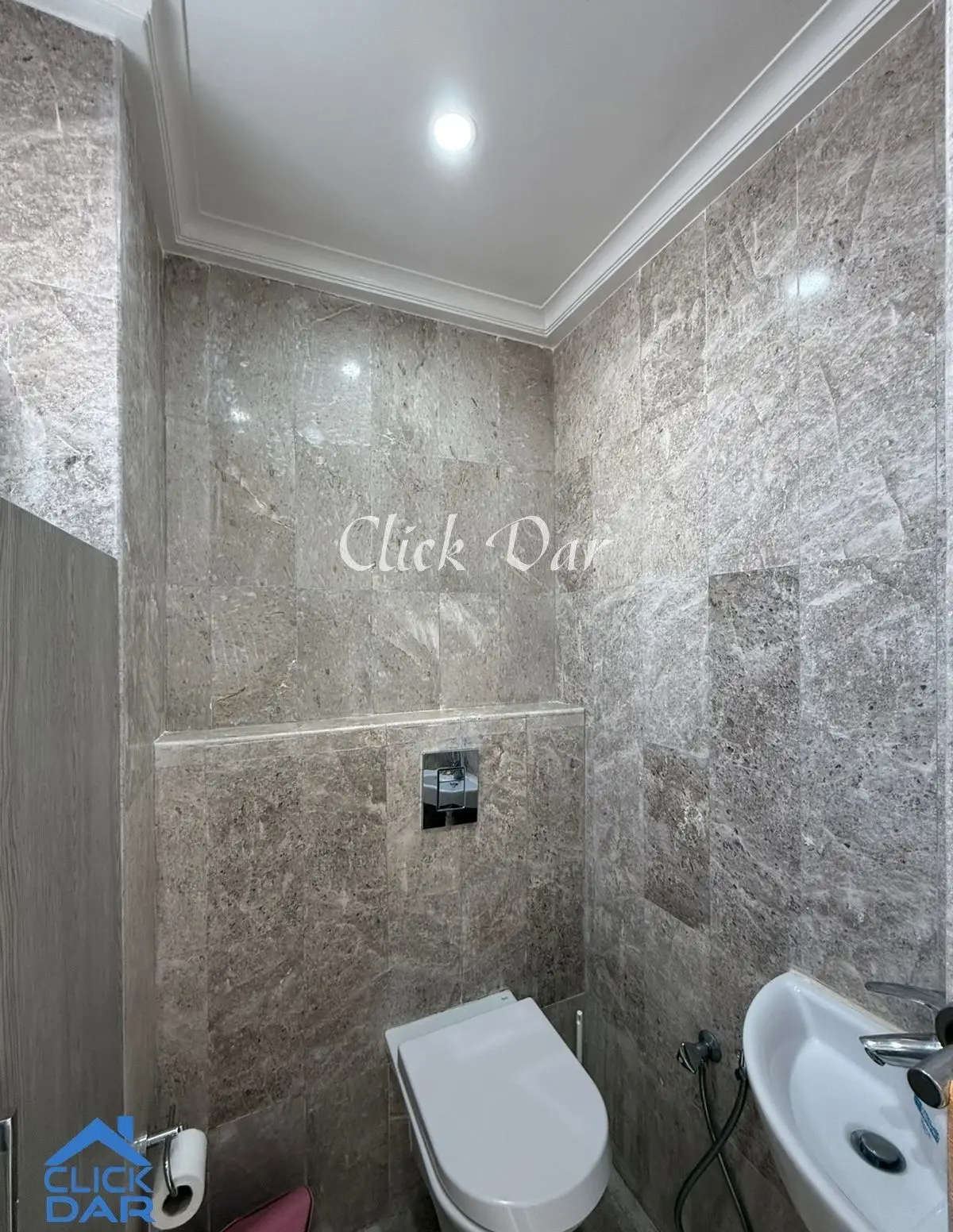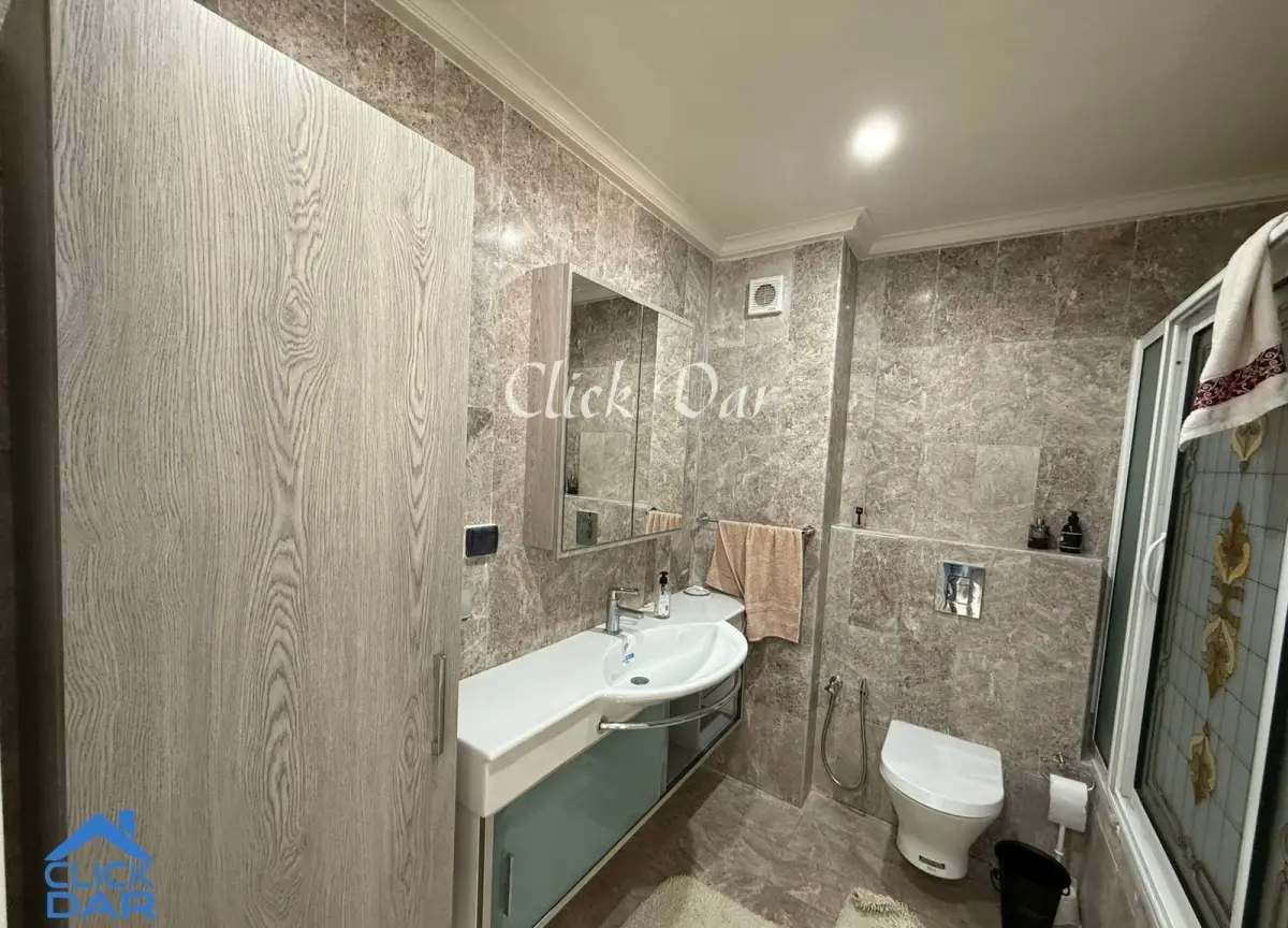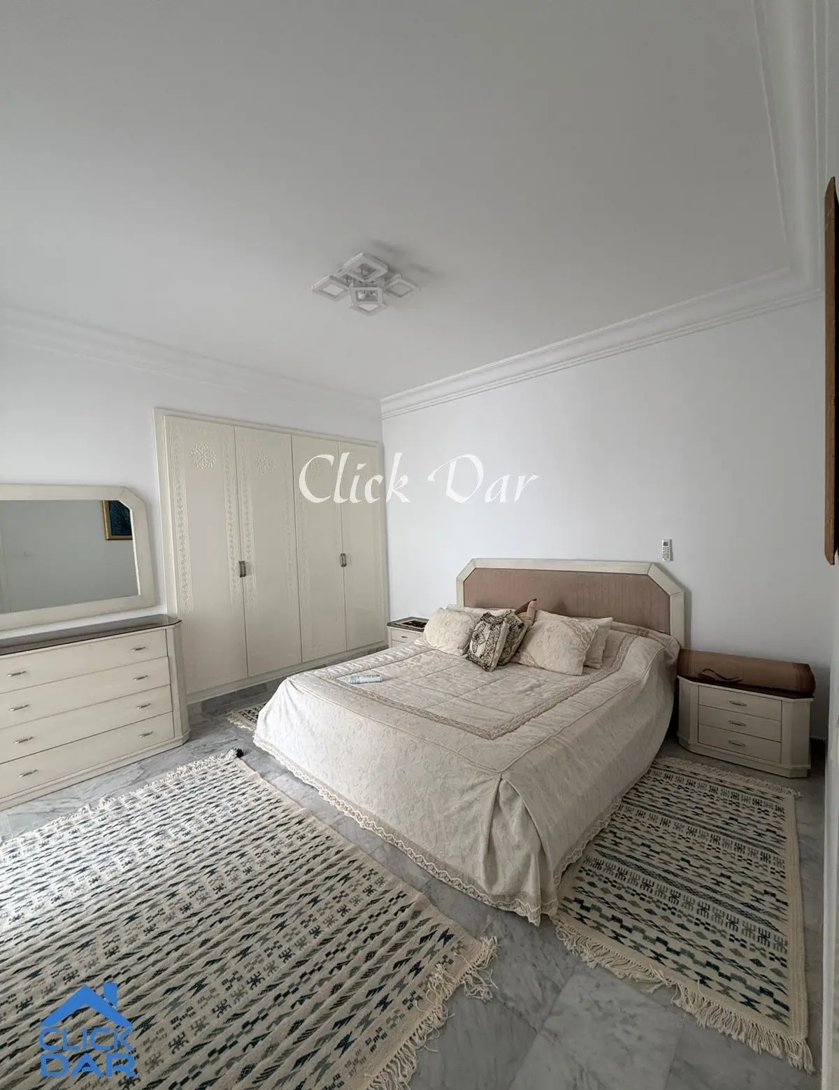 Il se compose d’un salon, séjour et une salle à manger avec une vue mer, deux chambres à coucher, une cuisine bien aménagée et équipée, une salle de bain et une salle d’eau.