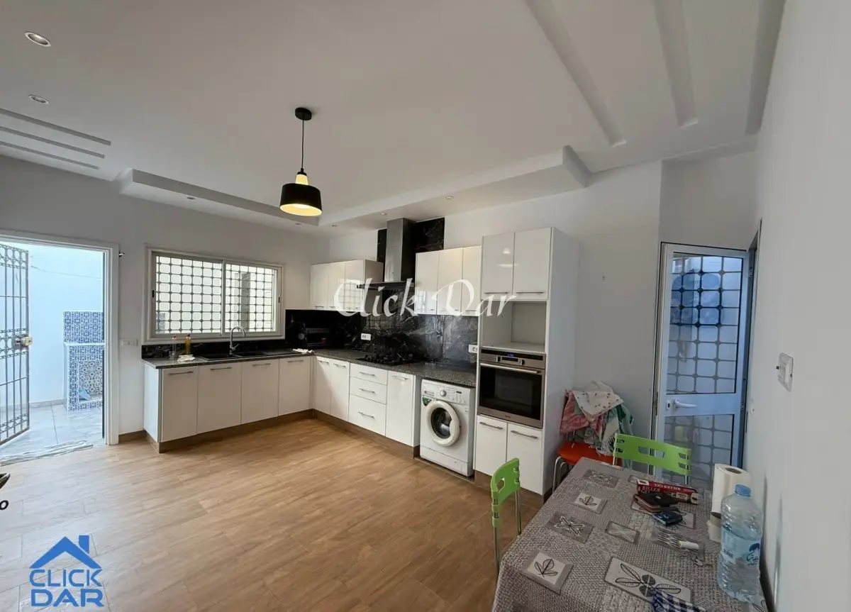 Pour la location annuelle, une maison en S+2 indépendante avec terrasse, située en plein centre ville de Hammamet- à pieds de la plage et de toutes commodités.