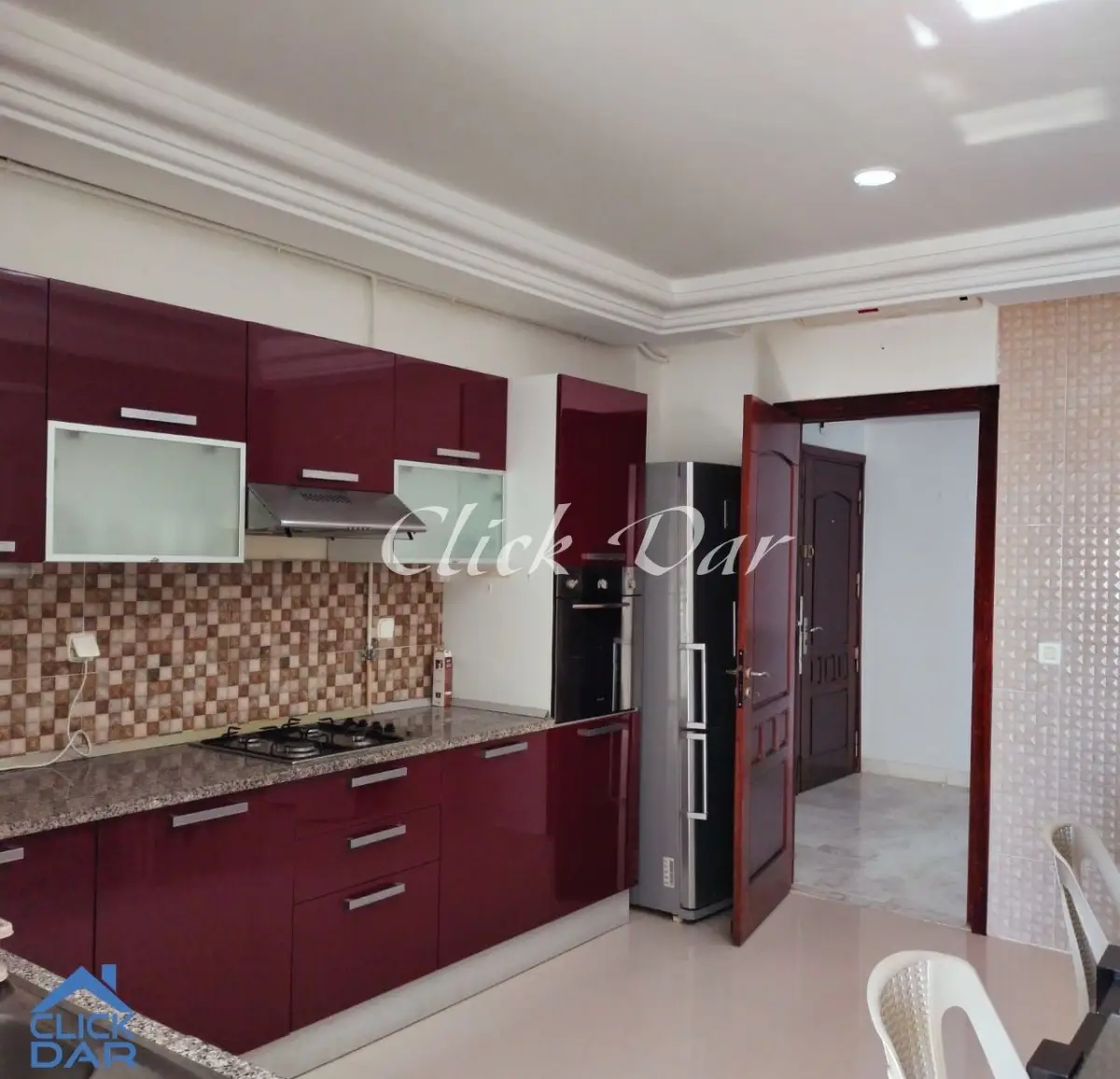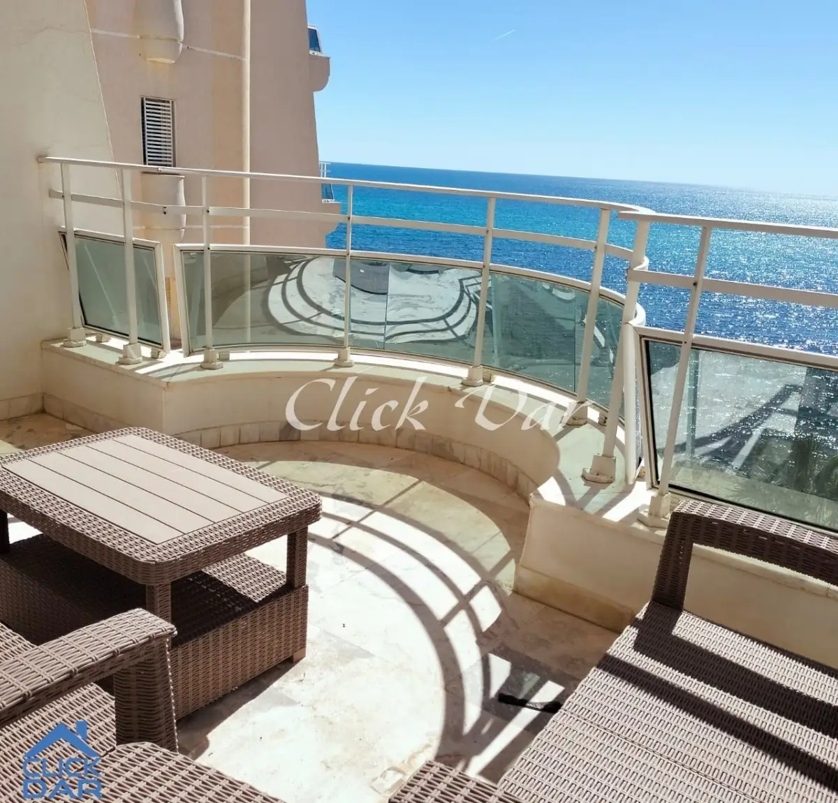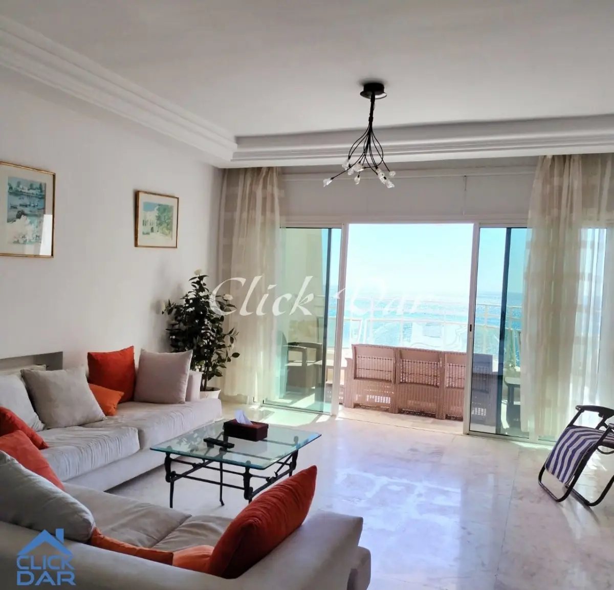 L’agence immobilière CLICK DAR vous propose Pour la location estivale, un appartement en S+2 au 3éme étage, d’une résidence sécurisée et gardée pieds dans l’eau, en plein centre ville de Hammamet.