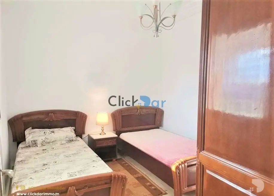 Click Dar Immobilier Hammamet vous propose pour la location annuelle, un appartement en S+2 au 2ème étage, situé à Hammamet- Théâtre.