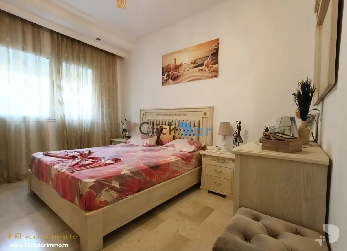 Click Dar Immobilier Hammamet vous propose pour la location annuelle, un appartement S+2 au 1er étage dans une résidence sécurisée à Hammamet Nord.