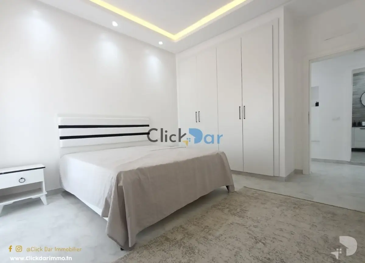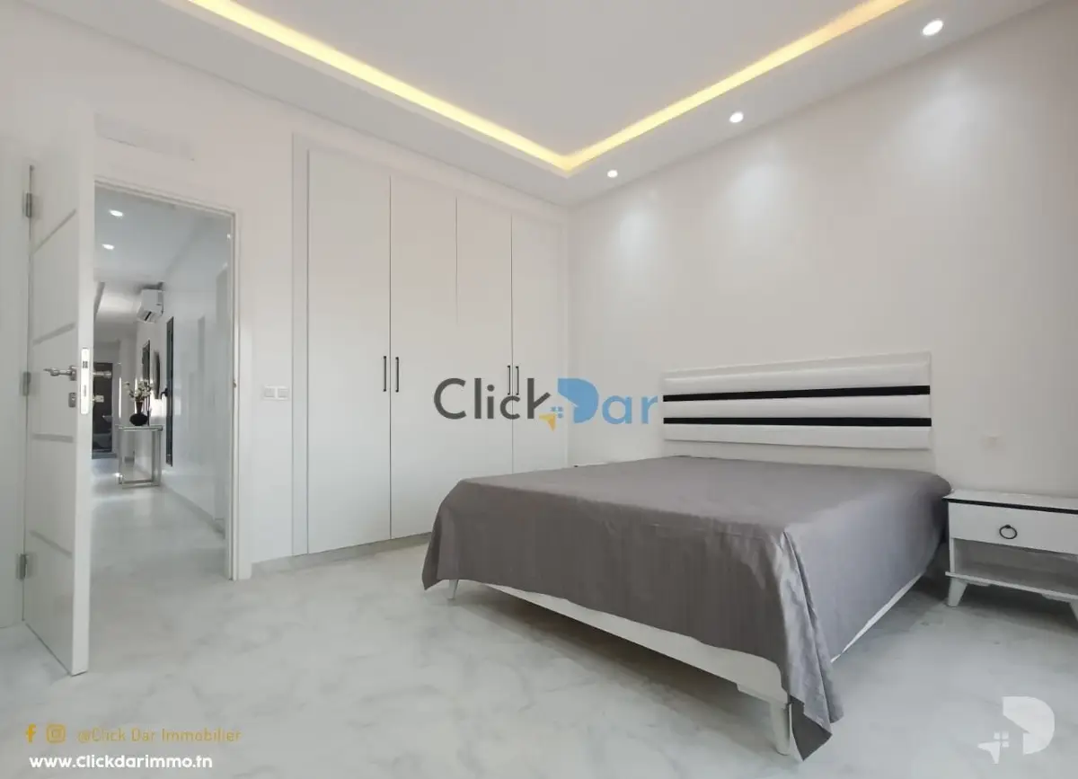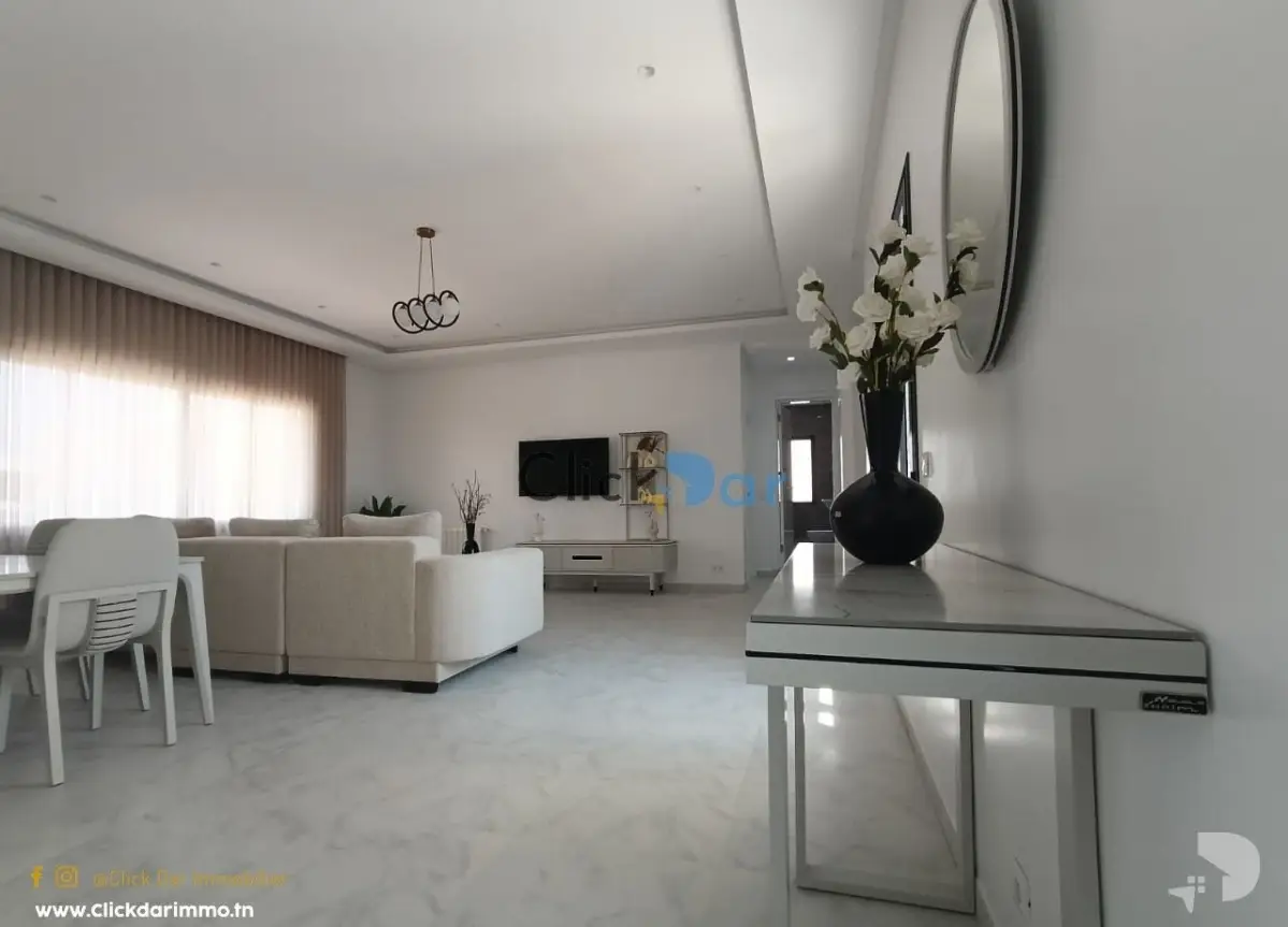 Click Dar immobilier vous propose pour la location annuelle, un appartement nouvelle construction en S+3, situé à Hammamet Nord, à 5 min à pieds de la plage.