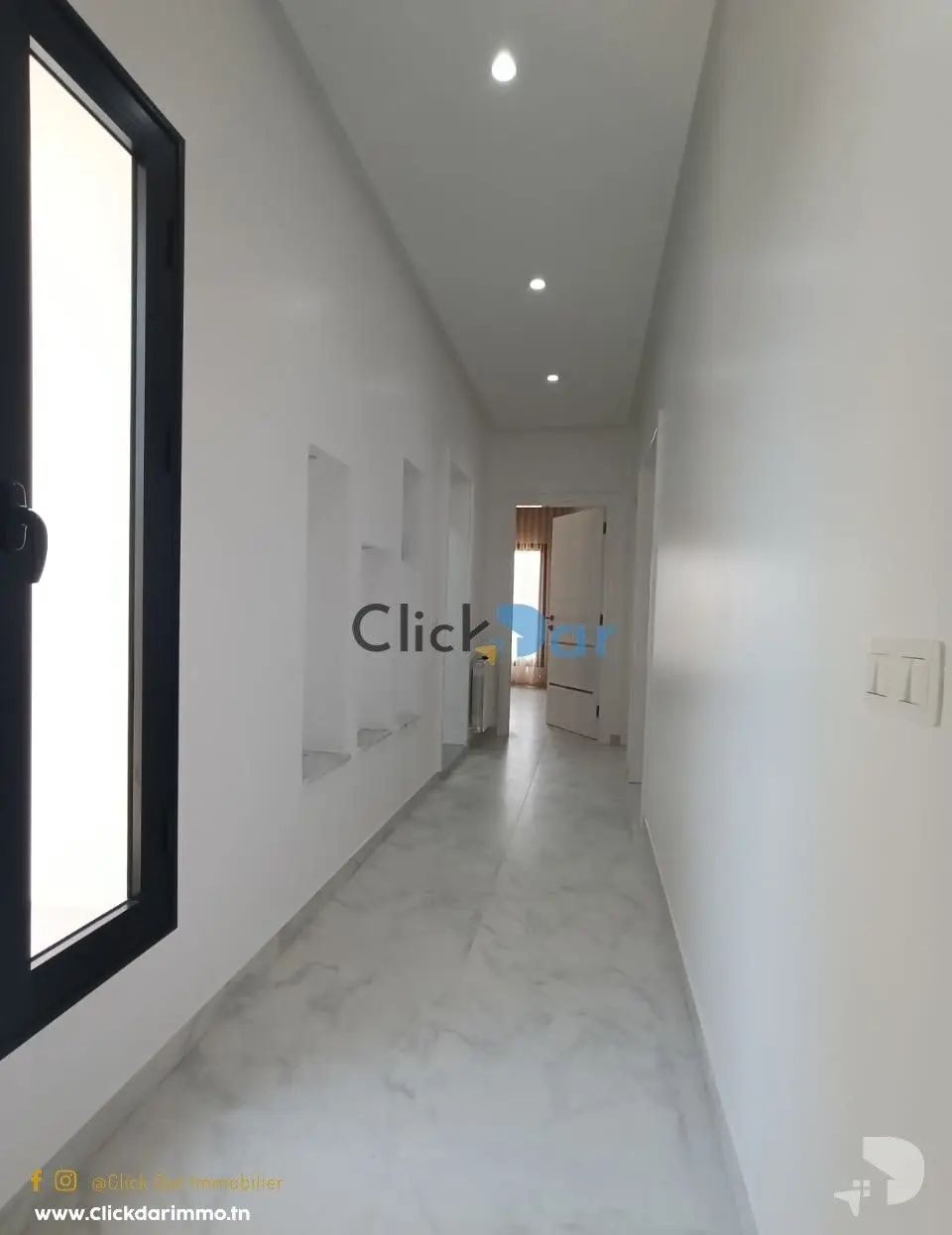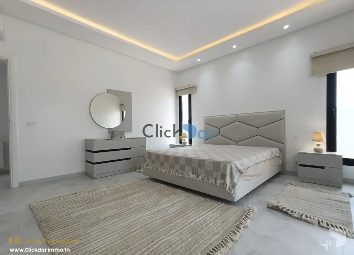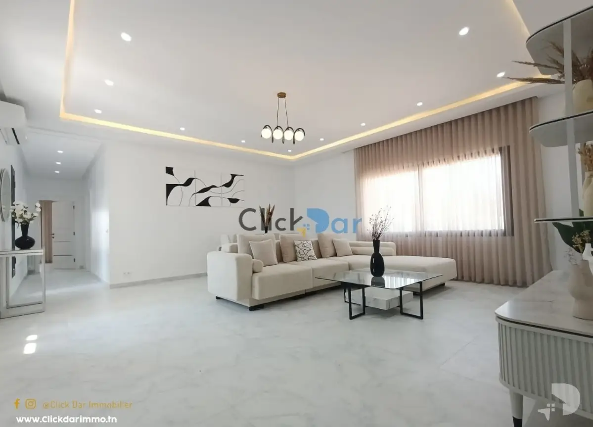 Click Dar immobilier vous propose pour la location annuelle, un appartement nouvelle construction en S+3, situé à Hammamet Nord, à 5 min à pieds de la plage.