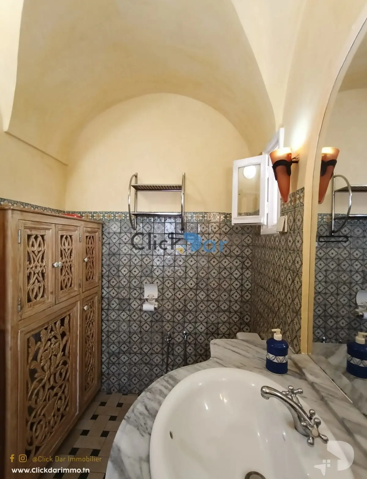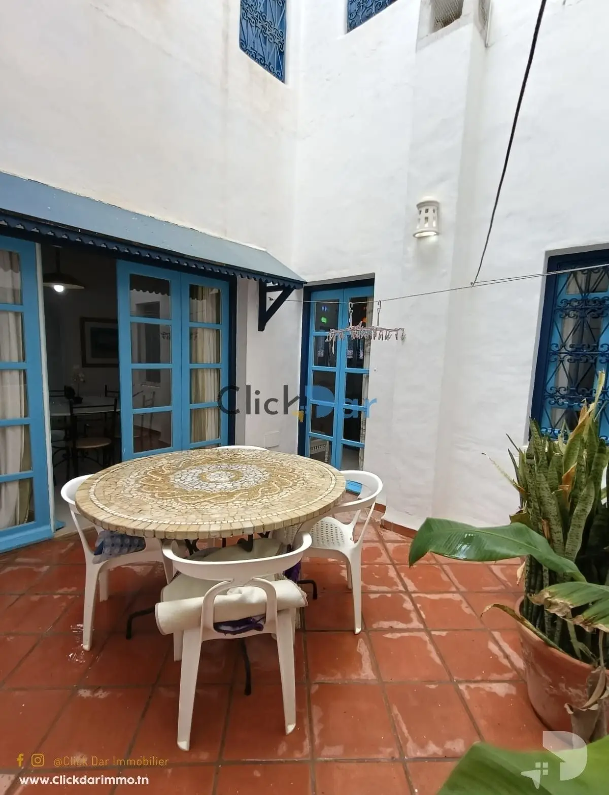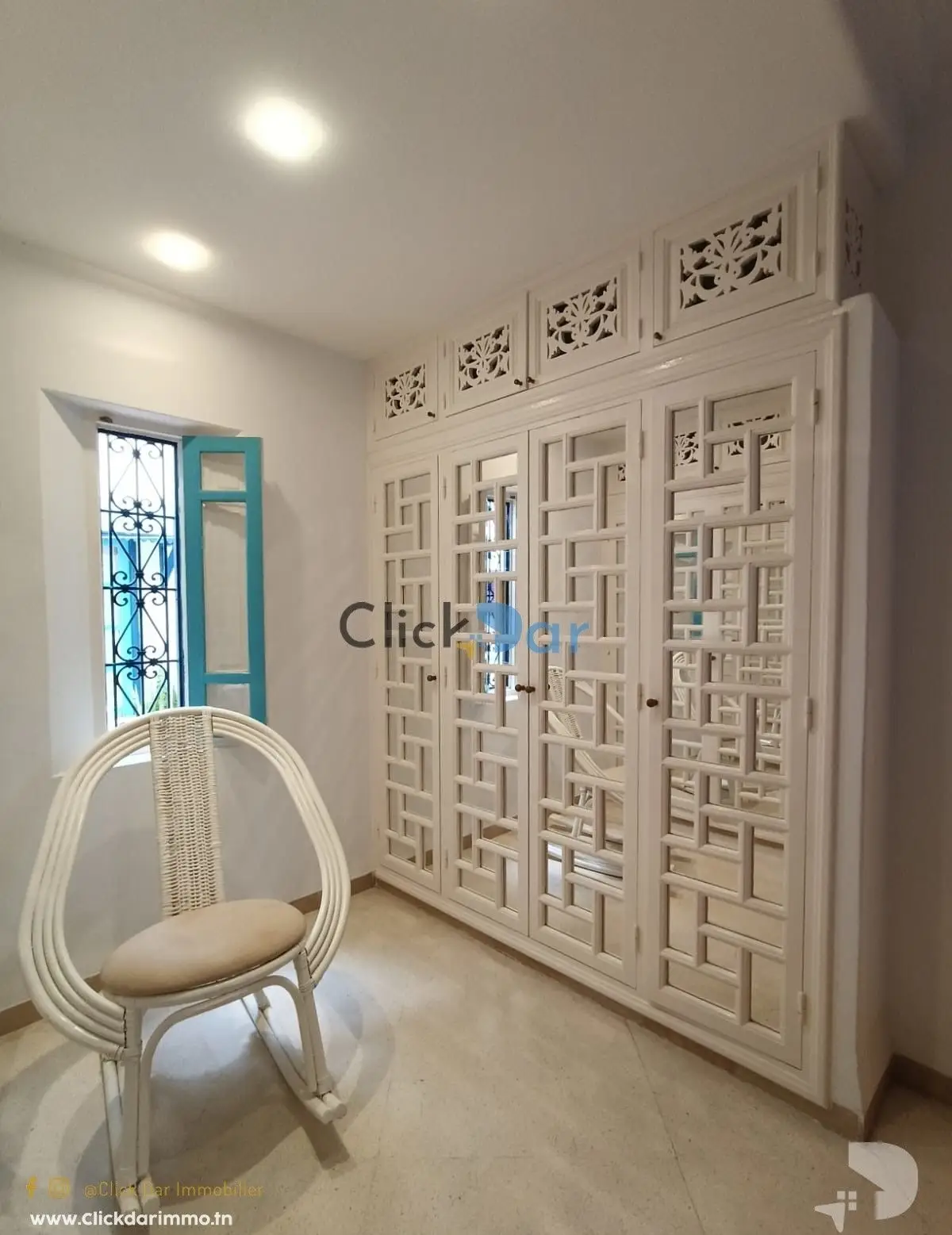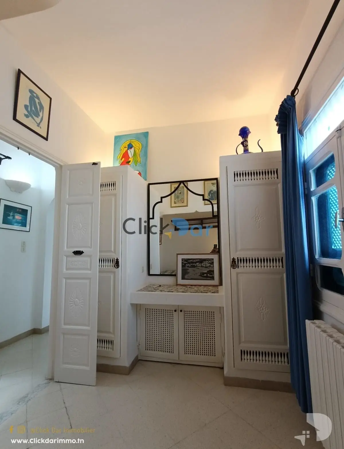 Click Dar Immobilier Hammamet vous propose pour la location annuelle, appartements en S+2 meublés au 1ér étage, situé à Hammamet,