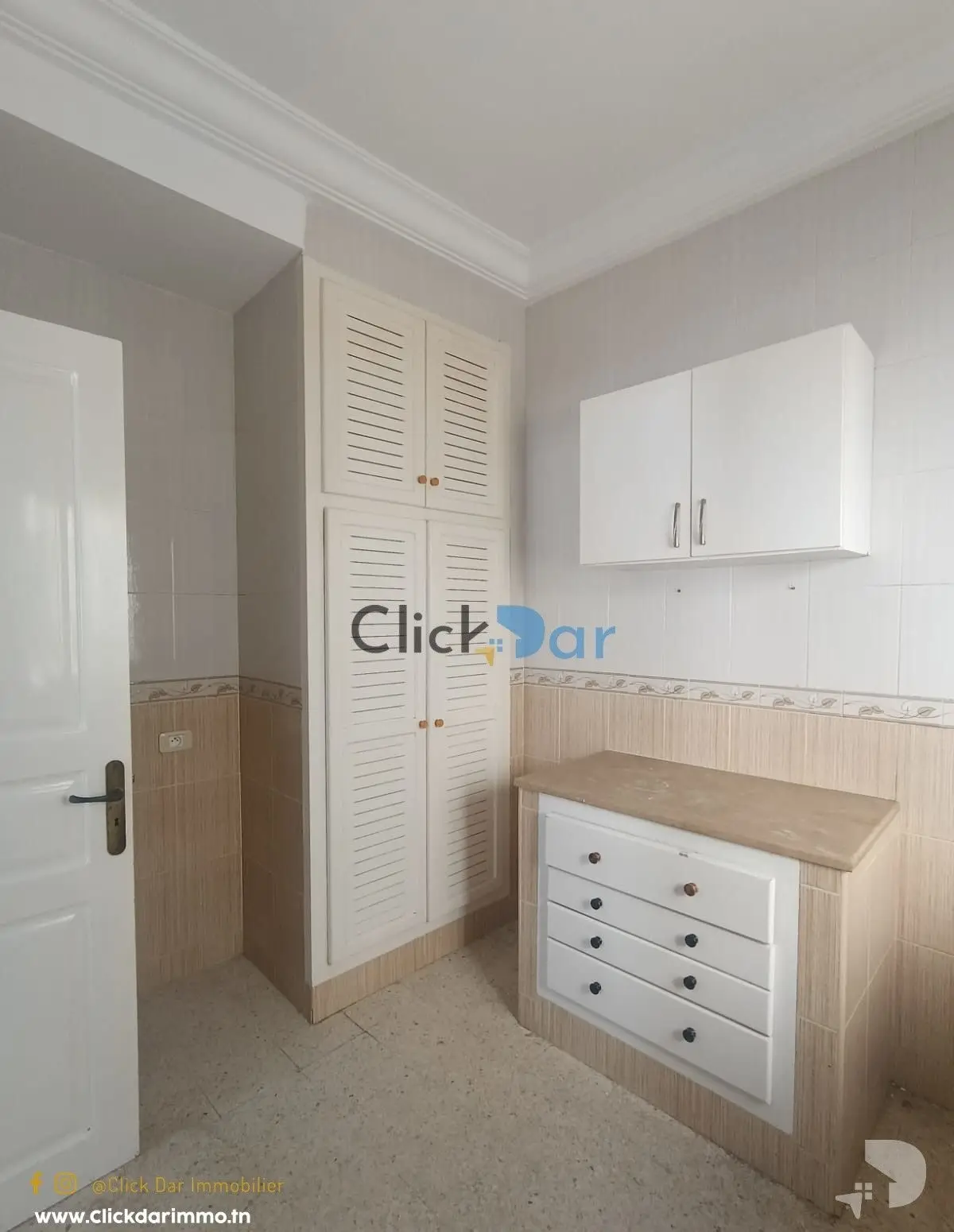 Click Dar Immobilier Hammamet vous propose pour la location annuelle, un appartement S+2 au 2éme étage situé à Hammamet