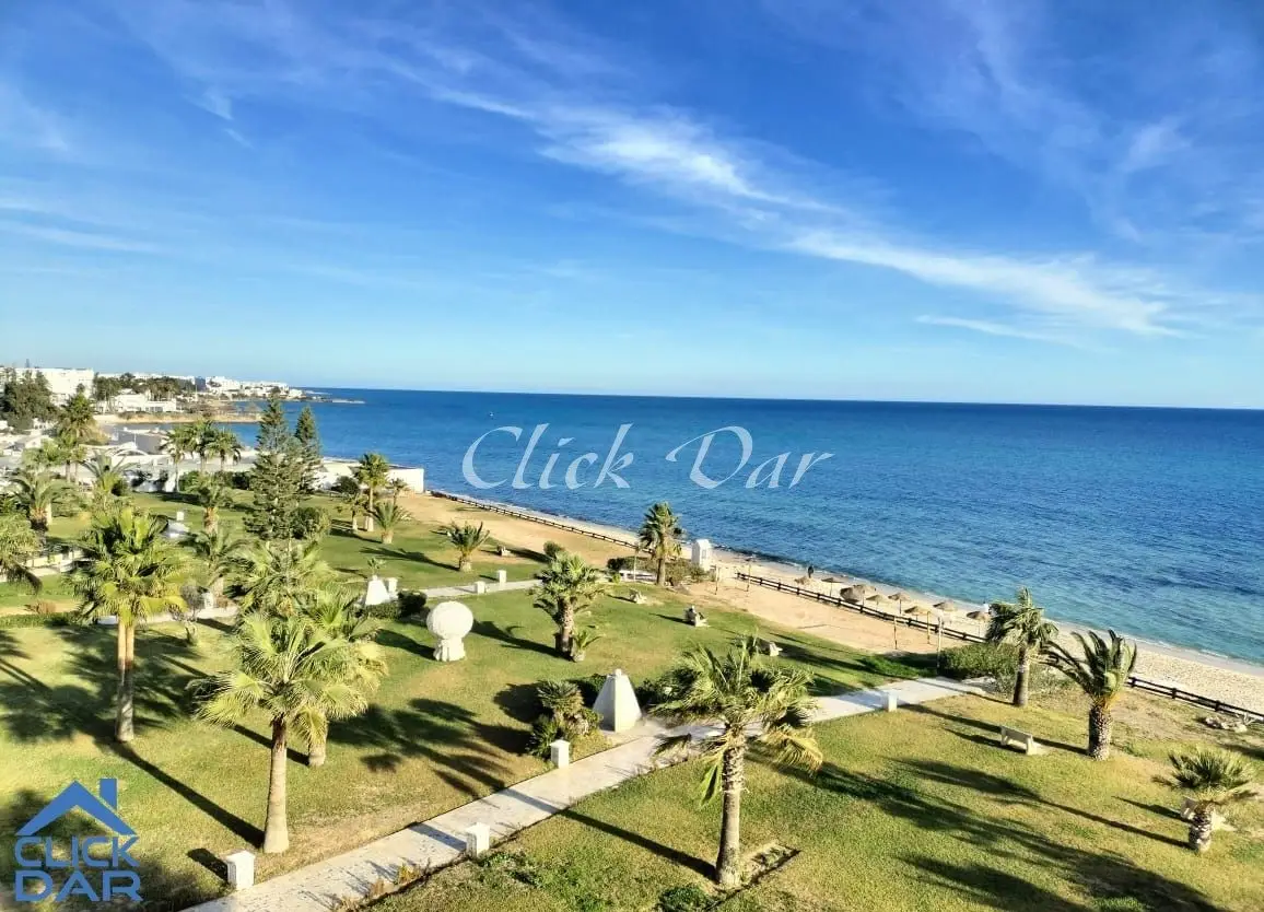 L’agence immobilière « CLICK DAR » vous propose pour la location de 10mois , un appartement en S+2 au 4ème étage, d’une résidence pieds dans l’eau à Hammamet.