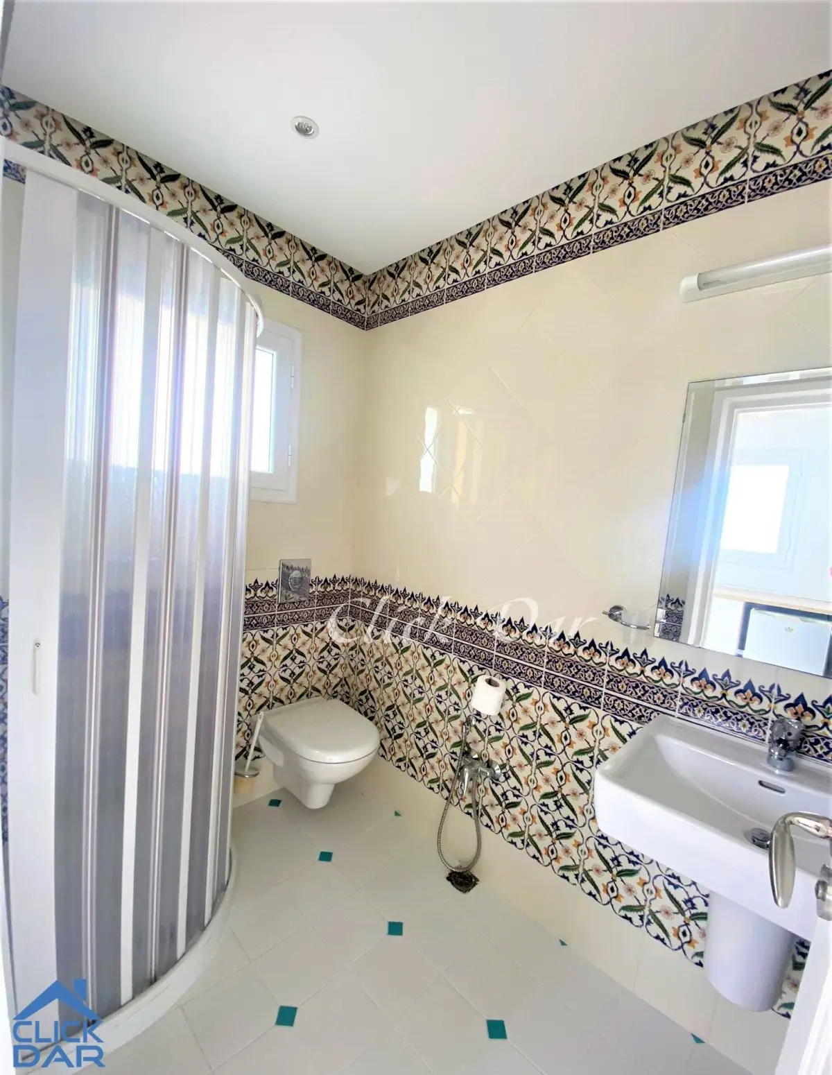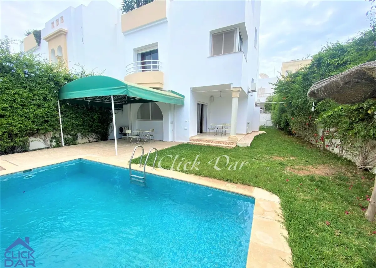 On vous propose pour la location estivale, une villa en S+5, sise dans une résidence gardée à la corniche de Hammamet, à2min à pieds de la plage.