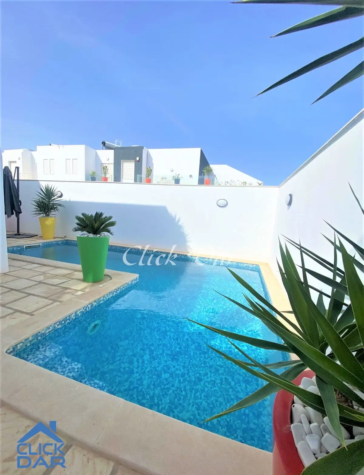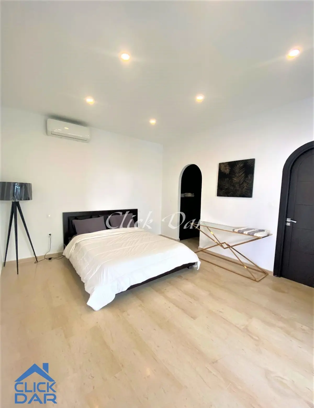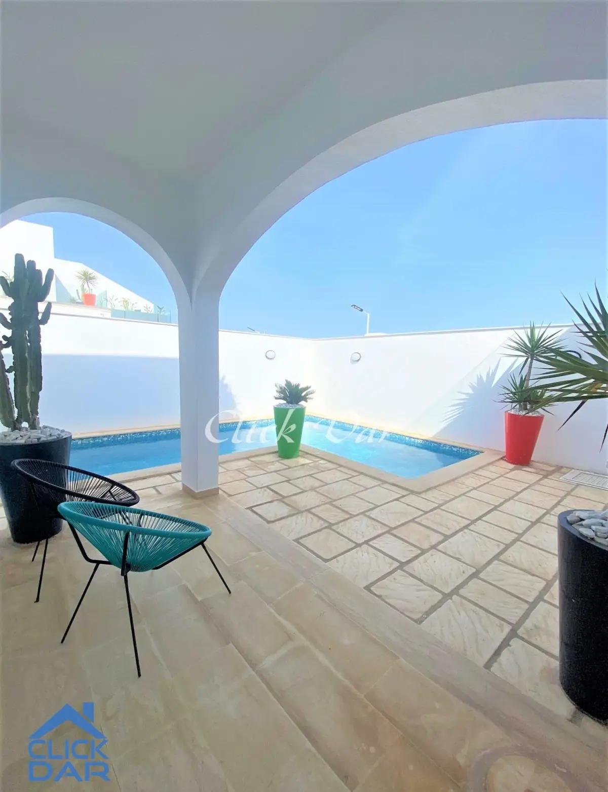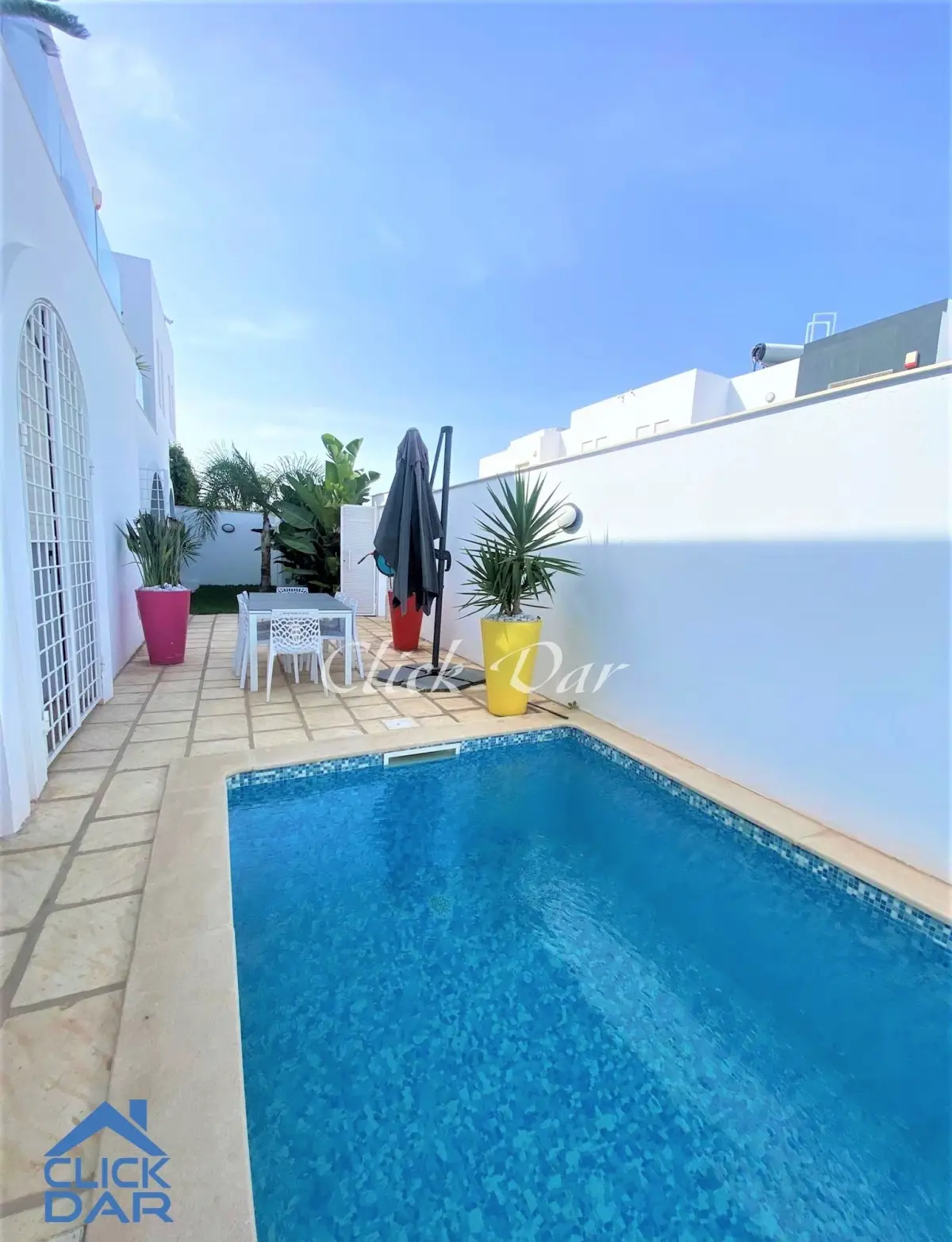 On vous propose pour la location estivale, une magnifique villa en S+3 avec piscine, située à Hammamet-Route de Manaret Hammamet.