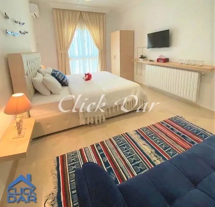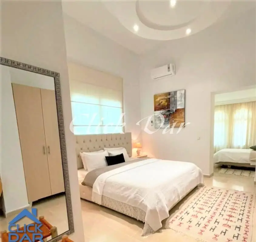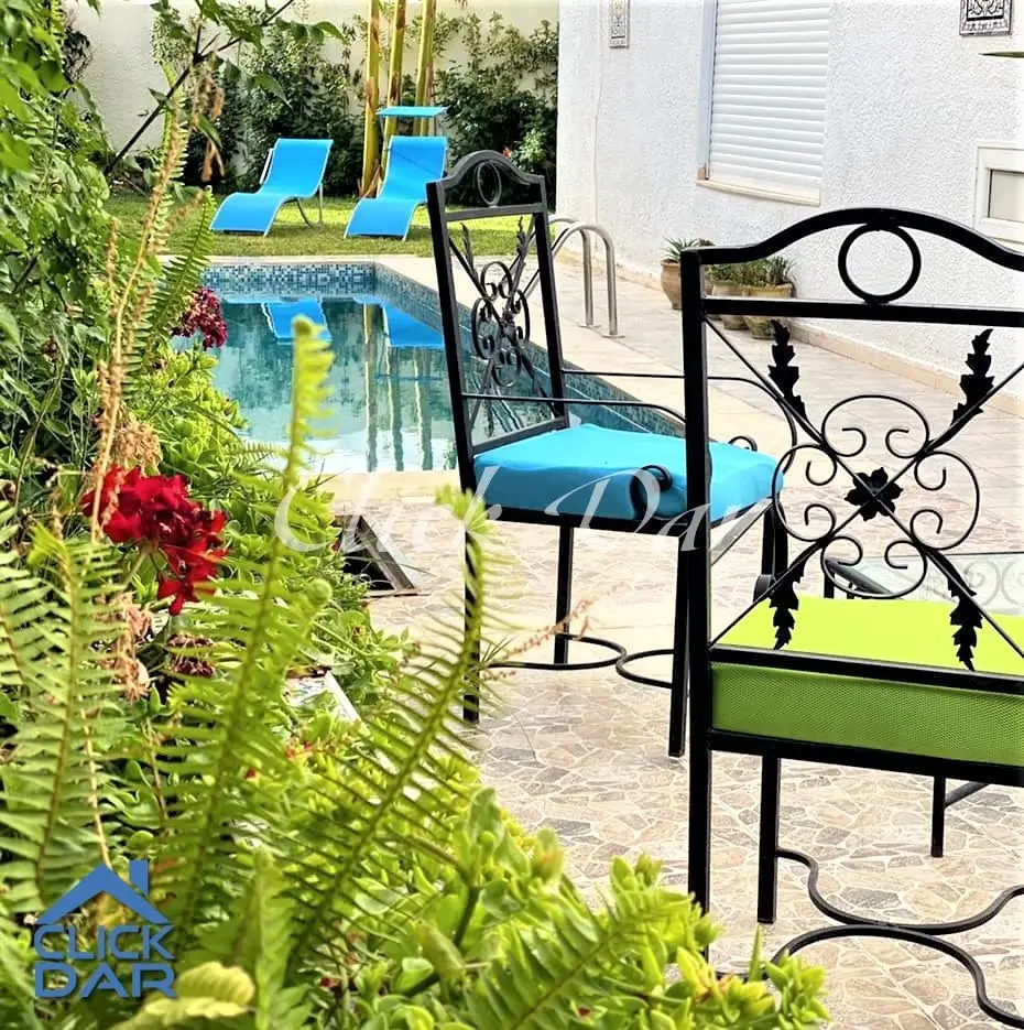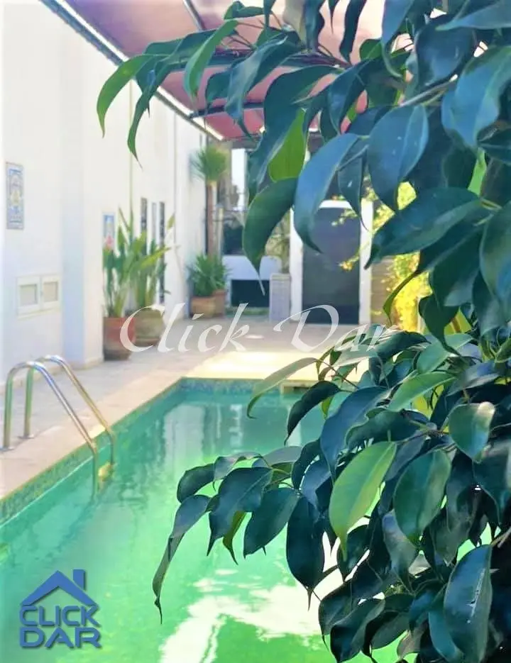 On vous propose pour la location, une magnifique maison d’hôte en S+4 (04 Suites)avec piscine, située à Hammamet- Ribat.