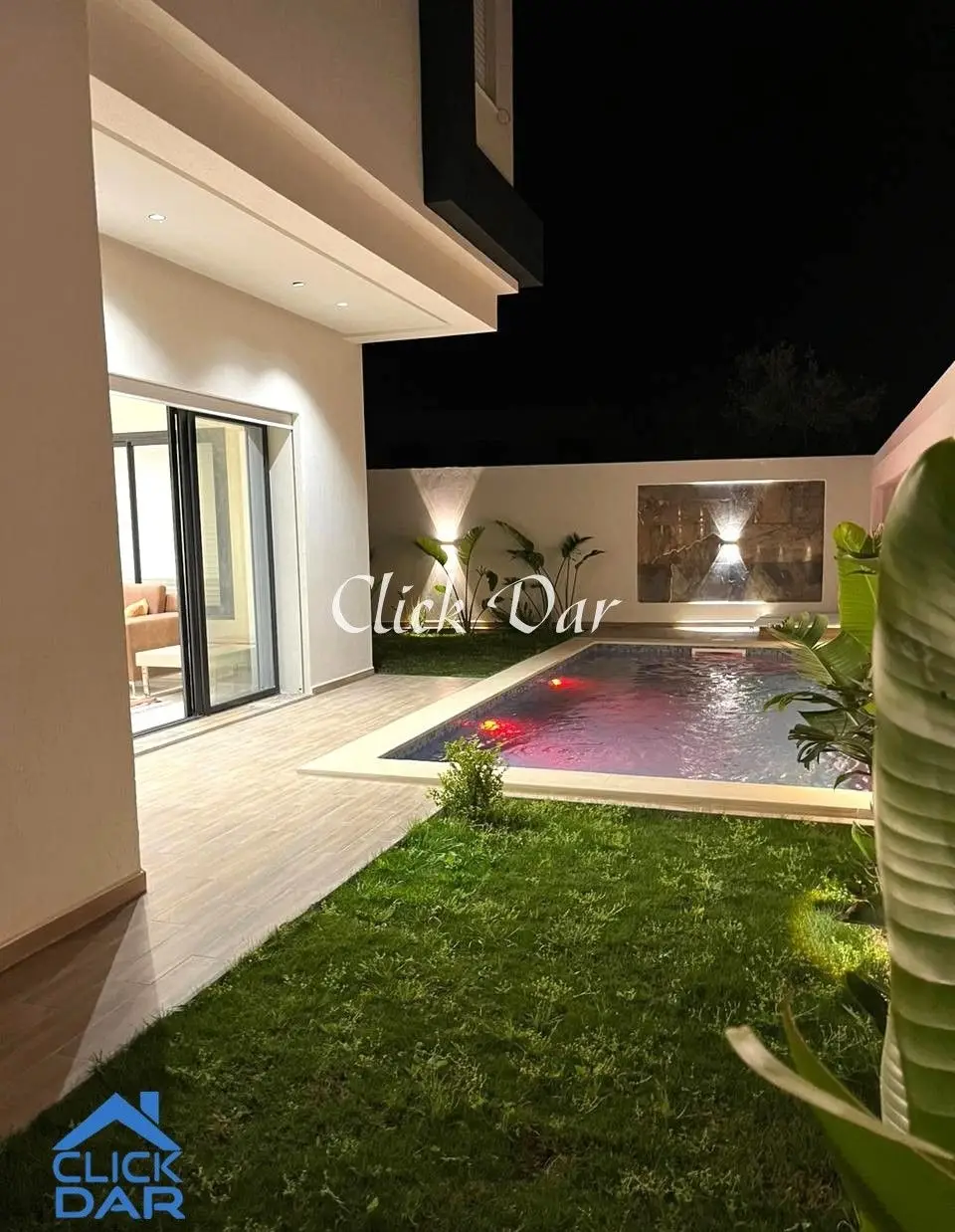 L’agence Click Dar Hammamet vous offre pour la vente une villa en S+3 (Suite + 2 chambres) avec Jardin et Piscine à Hammamet.