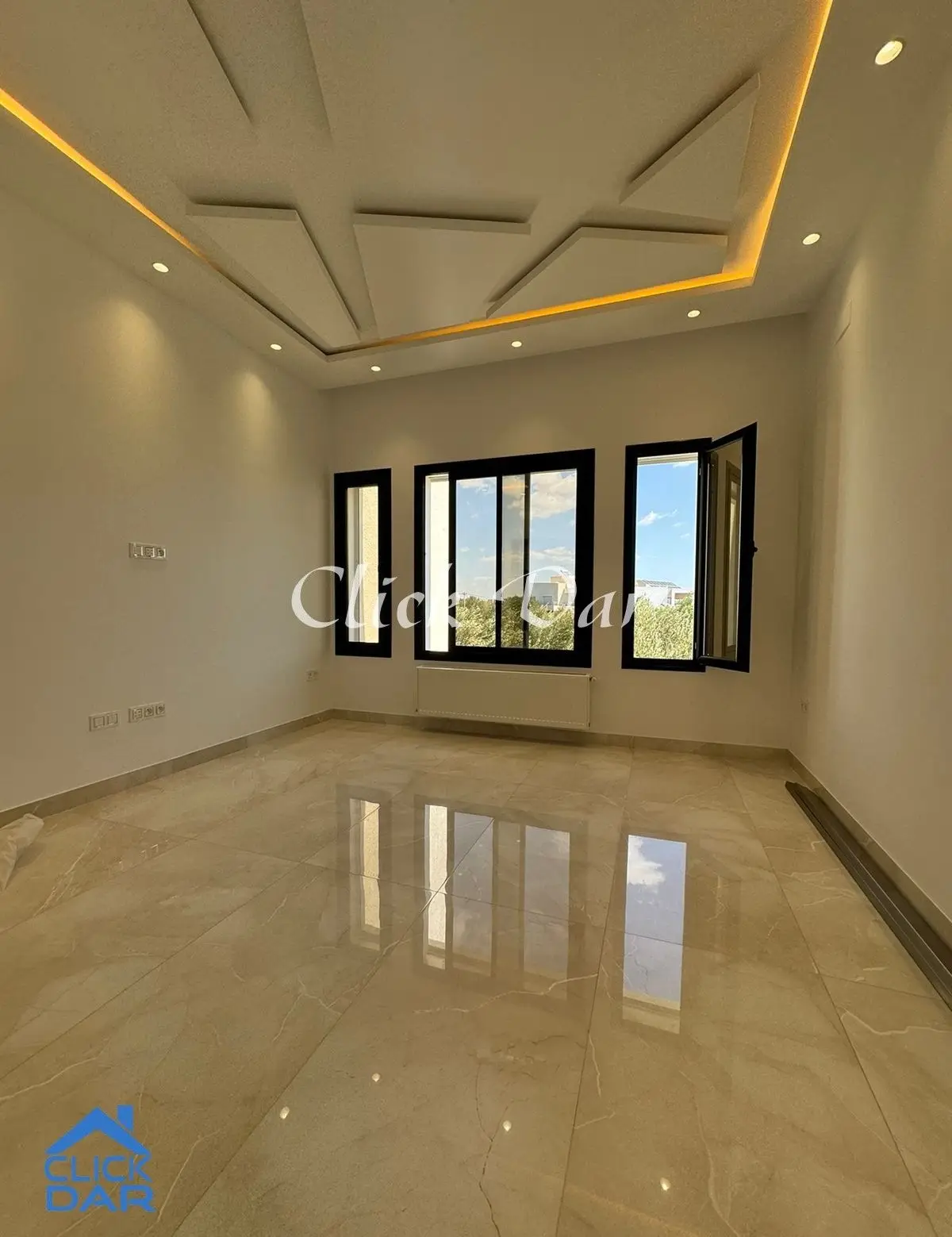 Pour la location annuelle, un étage de villa en S+3, indépendant, avec abris de voiture, situé dans un emplacement calme et sécurisé à Nabeul-Mora.