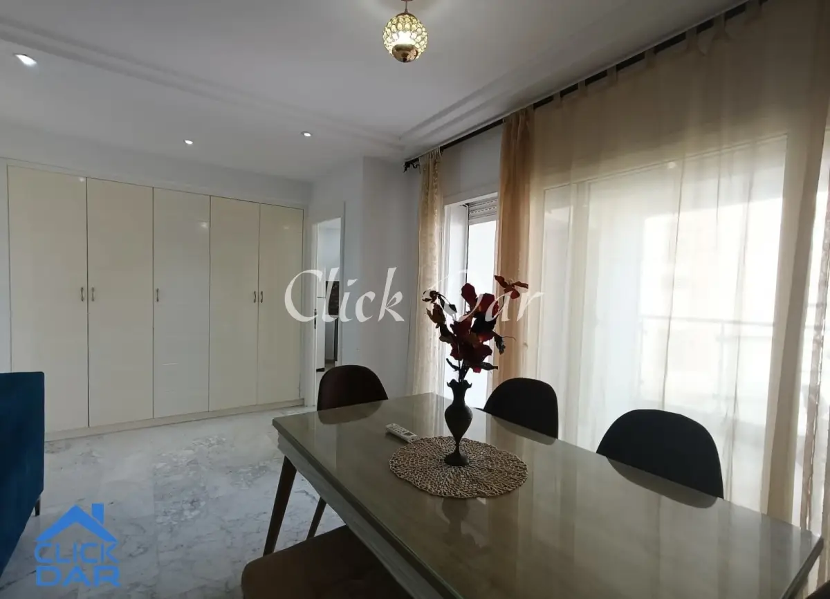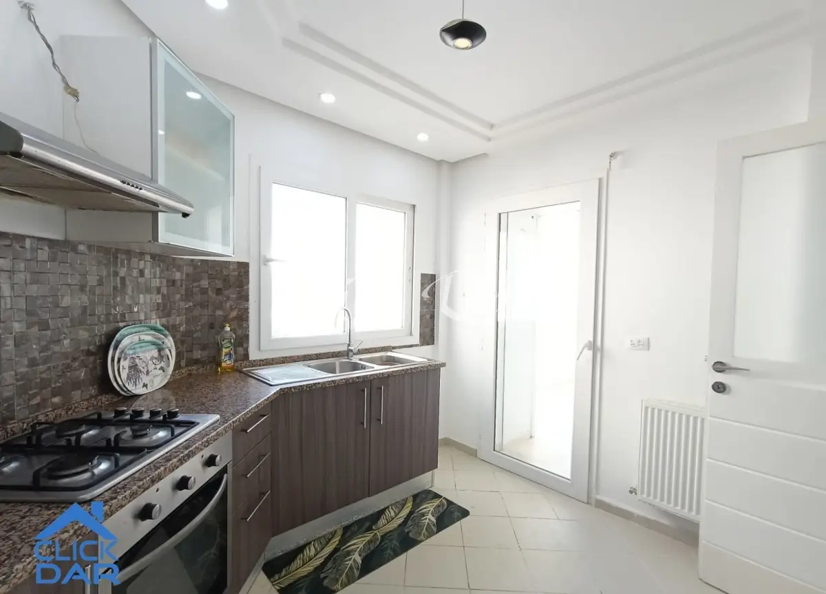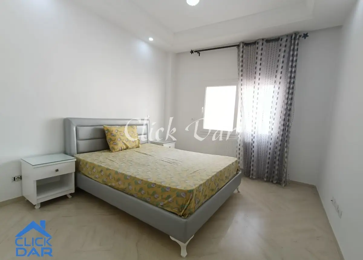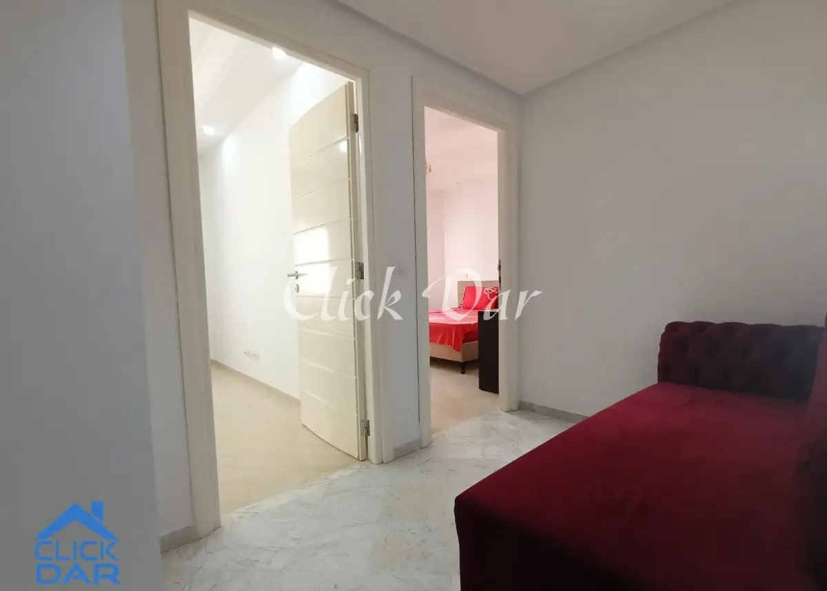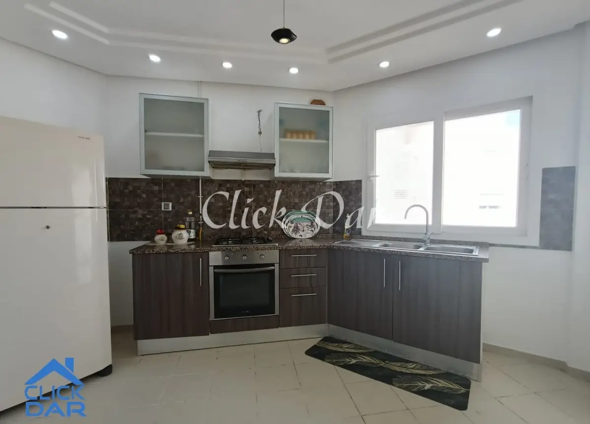 L’agence immobilière « Click Dar » vous propose pour la location annuelle, un appartement S+2 au 2ème étage avec place parking sous sol, dans une résidence sécurisée à l’AFH- Hammamet Nord.
